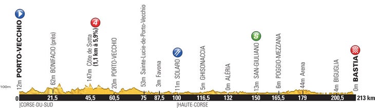 For the first time in 40 years, the Tour de France starts with a road stage tailor-made for the sprinters. The 213-kilometer opening leg from Porto Vecchio to Bastia only includes one categorized climb, just 45km into the stage, and a fairly straightforward finish.