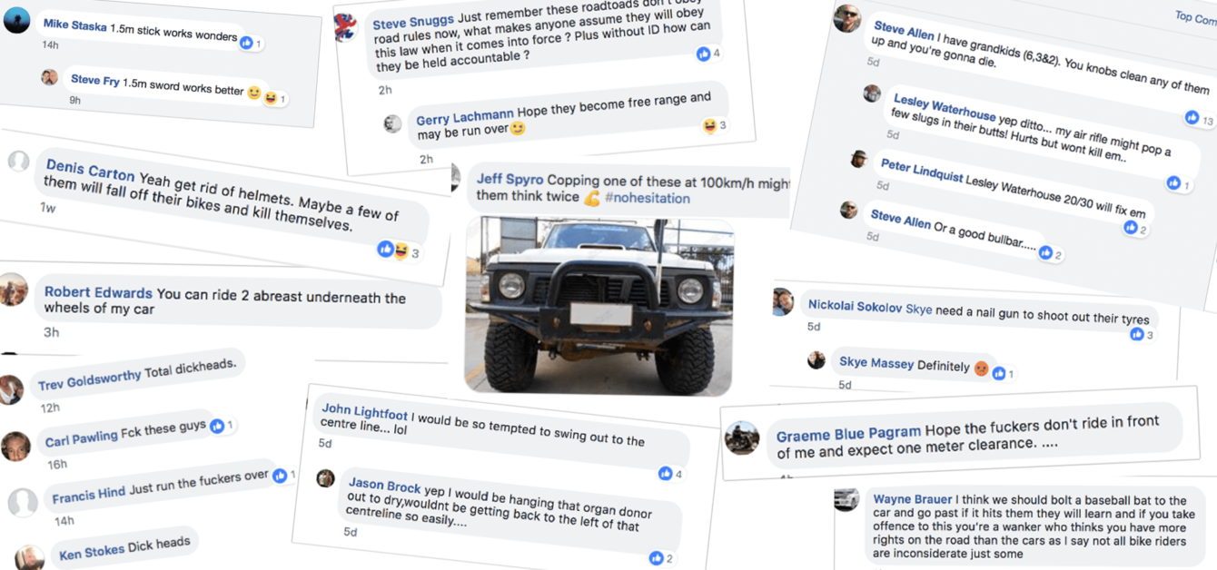 In a nutshell, that’s why this story matters: because the hate preached on anti-cycling Facebook pages isn’t confined to the digital realm. It’s a poison that bleeds from the screen into the real world, where aggression towards cyclists is very real, and very deadly.