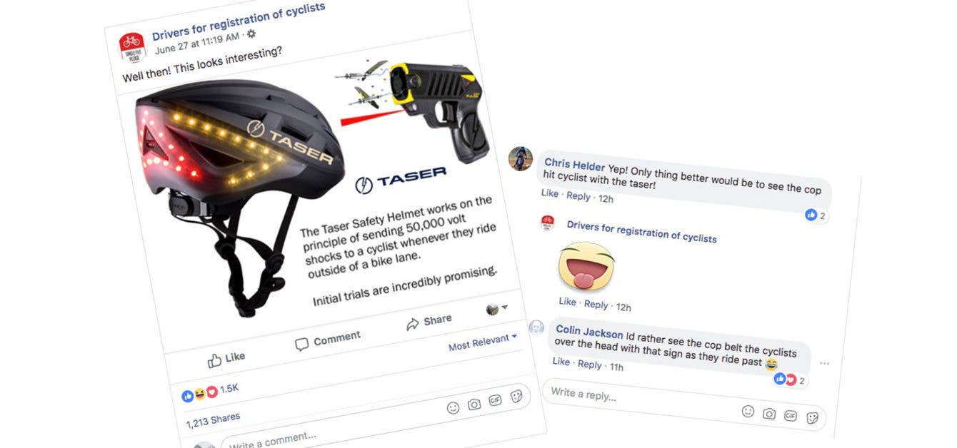“We firmly believe the page is encouraging resentment and hatred towards people who ride bicycles and feeding that hate willingly and strenuously,” said a spokesperson for the page. “One only has to look at the comments on the page advocating violence and death towards cyclists. The level of malicious content is staggering. It is like some form of deranged pathological hatred.