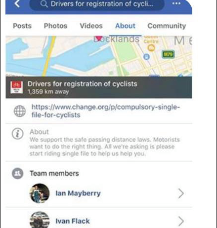 “It’s never been about the petition,” says Ed Hore, founder of Cycle.org.au. “It’s always been about their lies, their falsified images and their attitude that’s causing a higher amount of aggression. We do know that people have been killed because they’ve been egged on by Facebook.”