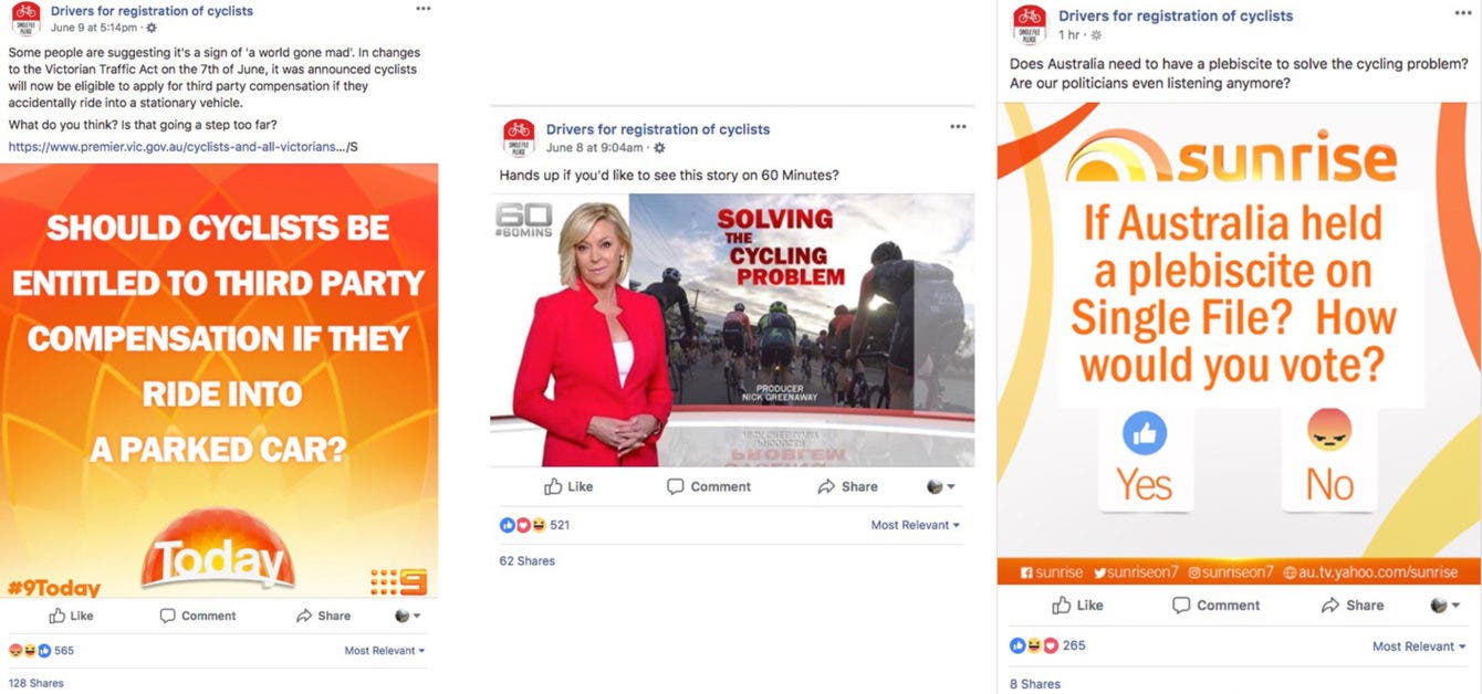 This increased aggression against cyclists has invoked the ire of online cycling advocacy groups. Pages like Cycle.org.au and Safe Cycling Australia have publicly condemned DFROC in recent years, while working to combat the page’s dangerous focus.