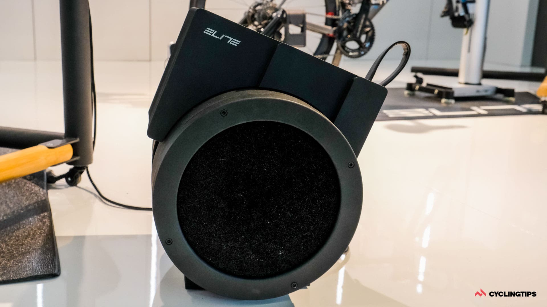 Elite has included a carbon-activated filter on each side of the Aria to filter the air blasted at our sweaty faces. Unable to source a filter capable of filtering air without negatively impacting airflow, Elite took the filter development in-house to create the filters shown in this prototype. While the prototype on show was a fully functional model, we haven’t yet had a chance to try a workout with the new fan, but it’s nice to think the air we are gulping down during full gas efforts in our dusty garages might be a little cleaner in the future.