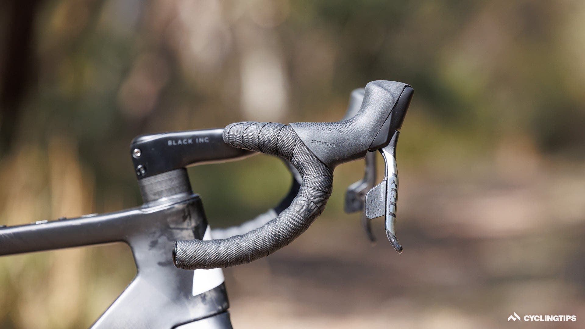 One-piece handlebars can often make or break an otherwise good bike, and Factor has done its research here. No matter where I placed my hands along or around the bar, they always felt at home.The generous top surface gives you control with only a light hold, while the flare at the drops is enough to add plenty of wrist clearance without feeling like you’re holding onto an entirely different handlebar.