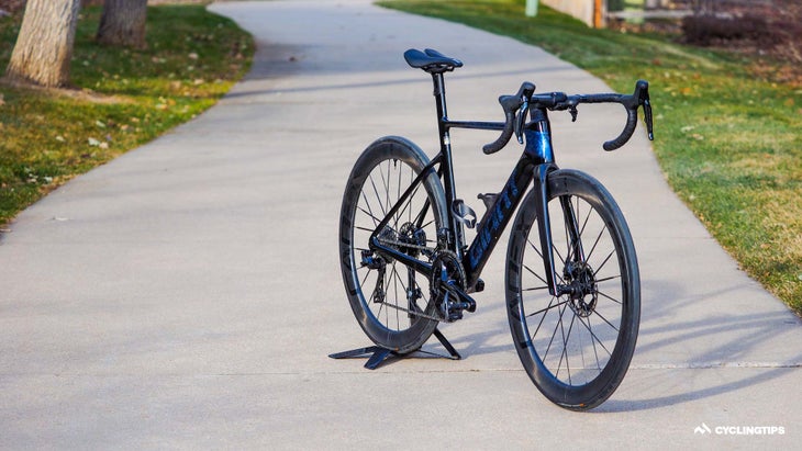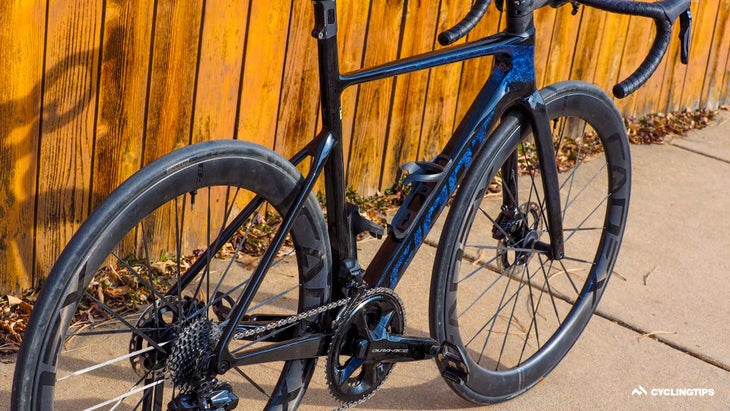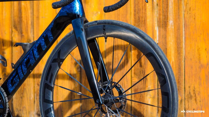 More polarizing in my opinion are the stock Cadex Race Aero tires. They roll fast and seem to grip well (at least in the dry – it doesn’t rain much where I am), and Giant says the intentionally ovalized casing profile shows savings as high as 5 W in the wind tunnel compared to more traditional round casings. That may be, but it also comes with quirky handling. Whereas more traditionally shaped tires gradually and gracefully turn into corners, these feel more like you have to consciously work to keep the bike from falling into them. It’s almost like driving a car with a weirdly-tuned variable-ratio steering rack. It’s super darty immediately off-center before settling in later.