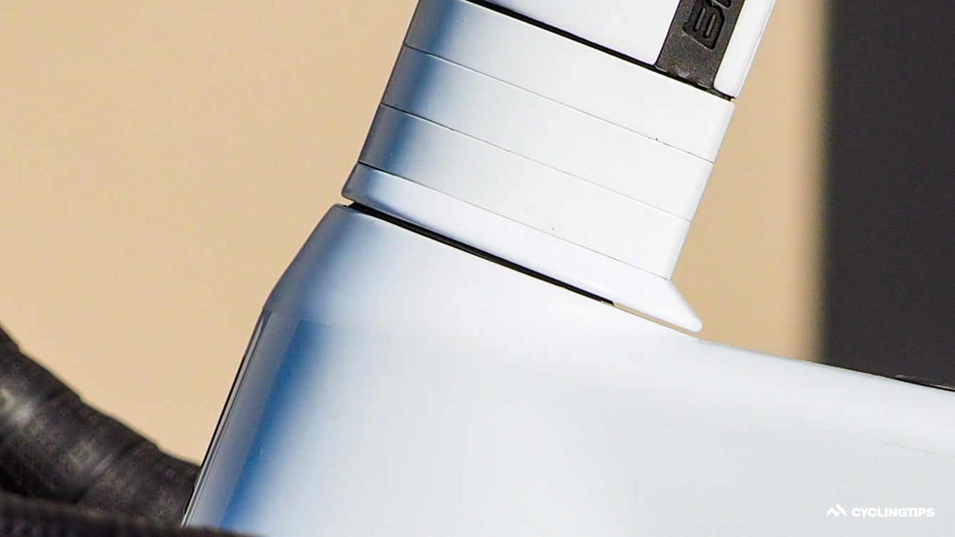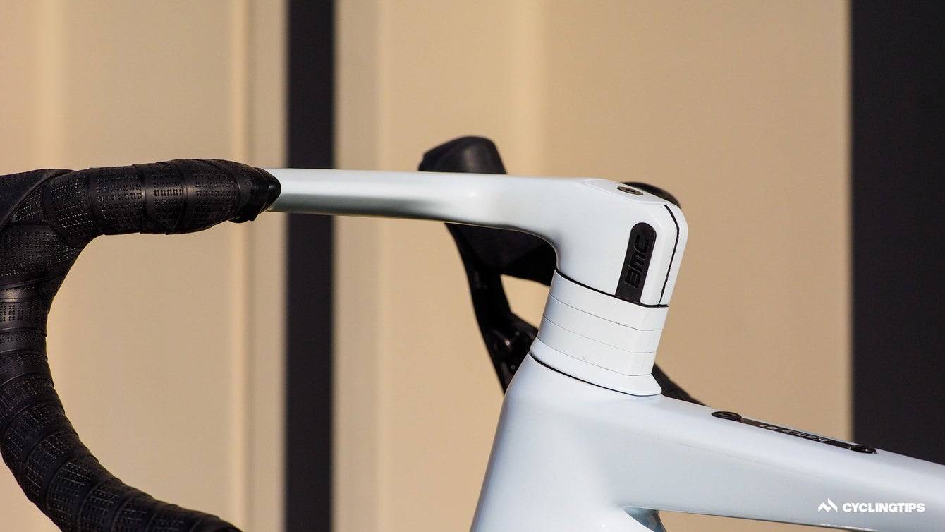 Yes, the flared drops do provide a more reasonable 42 cm of width, and as it’s my preferred position for sprinting, that wasn’t a big deal. But there are also lots of times I want more leverage and stability without shifting my weight down and forward, and this just doesn’t provide that flexibility. BMC’s more traditionally shaped road cockpits look like they’ll fit if you really want to swap, but that’s hardly an easy or inexpensive option.