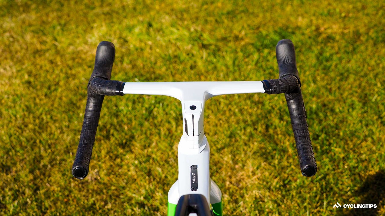 The drops are flared at 12.5°, though, so the bar is somewhat more generous at 42 cm at the ends for more control. What’s the motivation, you wonder? Simple: narrower is faster, at least as far as the wind is concerned.
