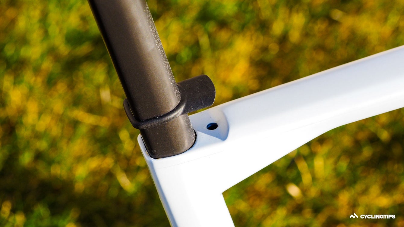 Other details include a PF86 press-fit bottom bracket shell, included aero-profiled bottle cages (really), a hidden wedge-type internal seatpost binder, and a removable front derailleur mount for 1x or 2x drivetrain compatibility. BMC doesn’t include an out-front computer mount, but there are two threaded holes in the standard locations on the underside of the cockpit should you want to add your own from a third party.