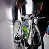 Team mechanics mounted a standard bottle cage and a round water bottle on Konovalovas’s P4, not an easy task, as the recess in the frame meant for the aero clip-in bottle has some threaded holes for the carbon snap-in mount for its intended aero bottle, but not in the places required for a standard bottle cage.