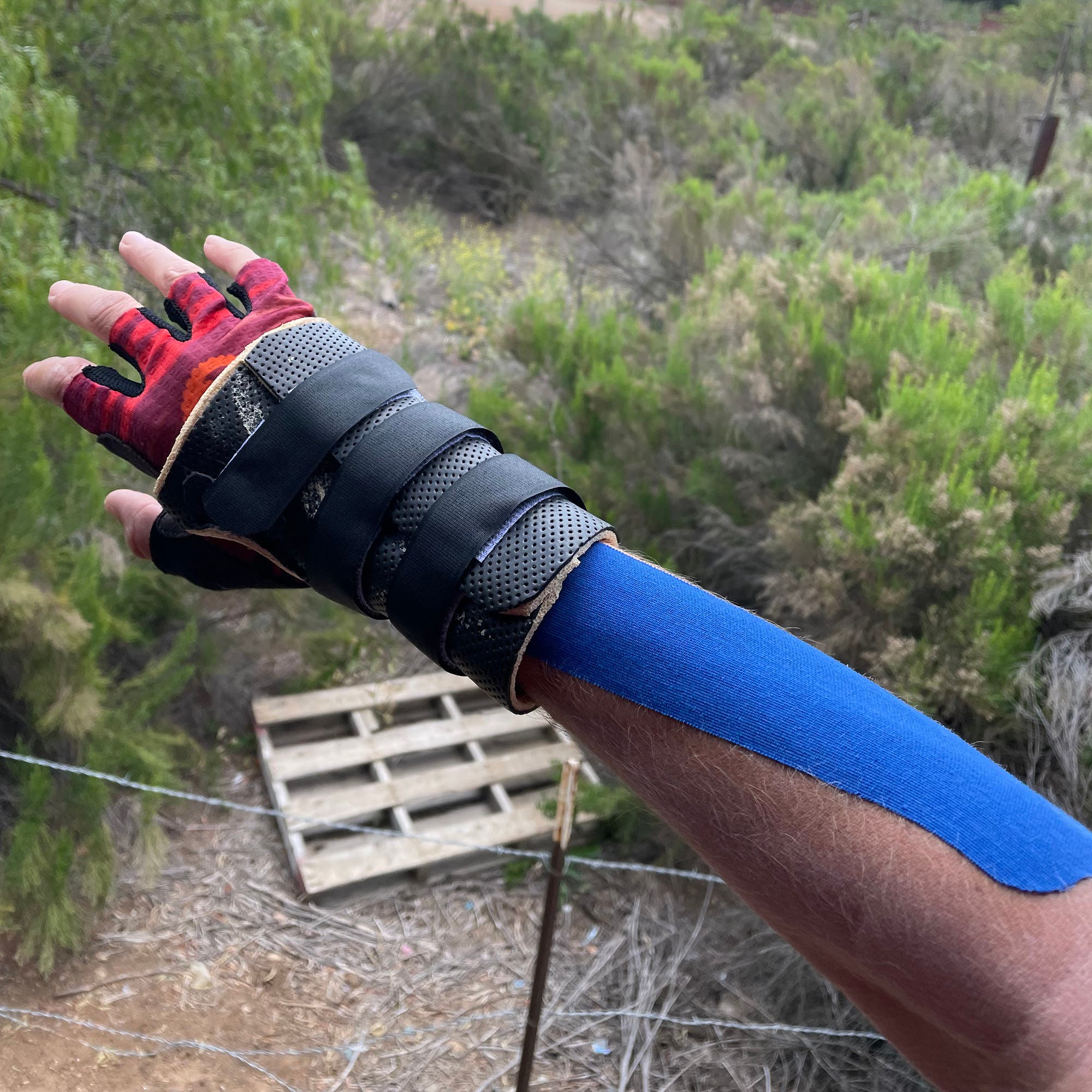 I’d had an x-ray on Monday. I knew it wouldn’t be fully healed, but I wanted to confirm that my outdoor road cycling since the injury hadn’t dislodged it further. Tuesday I visited the hand therapist and together we made a shorter, “racier” cast allowing me to handle the bike better but also adding more padding for bump absorption.