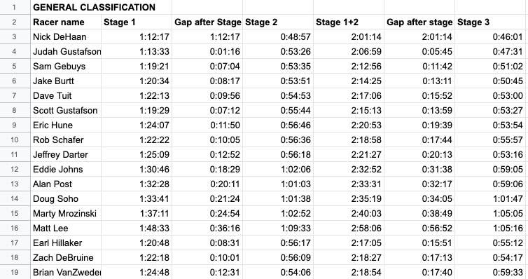 The rider, whose Facebook screen name is Sissy Pants, created a new segment on Strava that took in the ride’s entire 24.3-mile route, with all 2,123 feet of elevation on dirt and paved roads. Then, the team plotted out several weeks of proposed competition in a spreadsheet. The riders would ride the entire route as an individual time trial, rather than in the group.