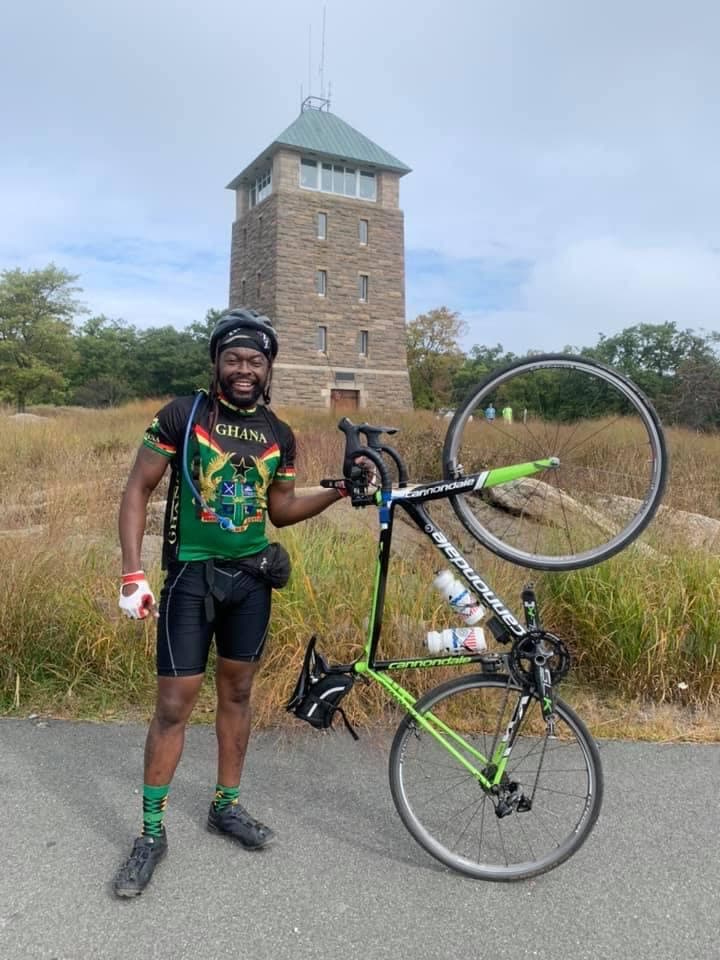 My name is Daniel Kofi Morteh and I was born and raised in Jersey City, New Jersey. I ran track in high school but wasn’t introduced to cycling until much later. I graduated college in 2008 as an aspiring filmmaker. The industry is difficult to navigate, so I took a job working the opening shift at Starbucks in Hoboken. Public transportation wasn’t available, so with my first paycheck, I bought a mountain bike. That was the beginning of my cycling and to this day it remains my main source of transportation. In 2013 I took a job at a fitness center and I found myself taking a lot of spin classes taught by pro cyclist Sebaj Adele. I came to admire Sebaj who has been my cycling mentor.