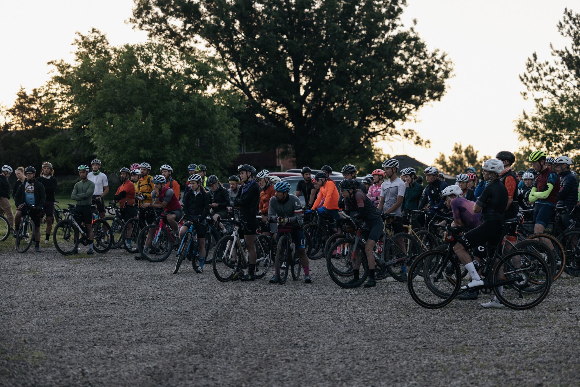 The first calls of songbirds blend with the familiar hum of knobby tires on pavement and the clank clank of shifting bicycle gears. These pre-dawn sounds feel louder than normal as we roll through gravel cycling’s global capital before sunrise, and head into the Kansas countryside.