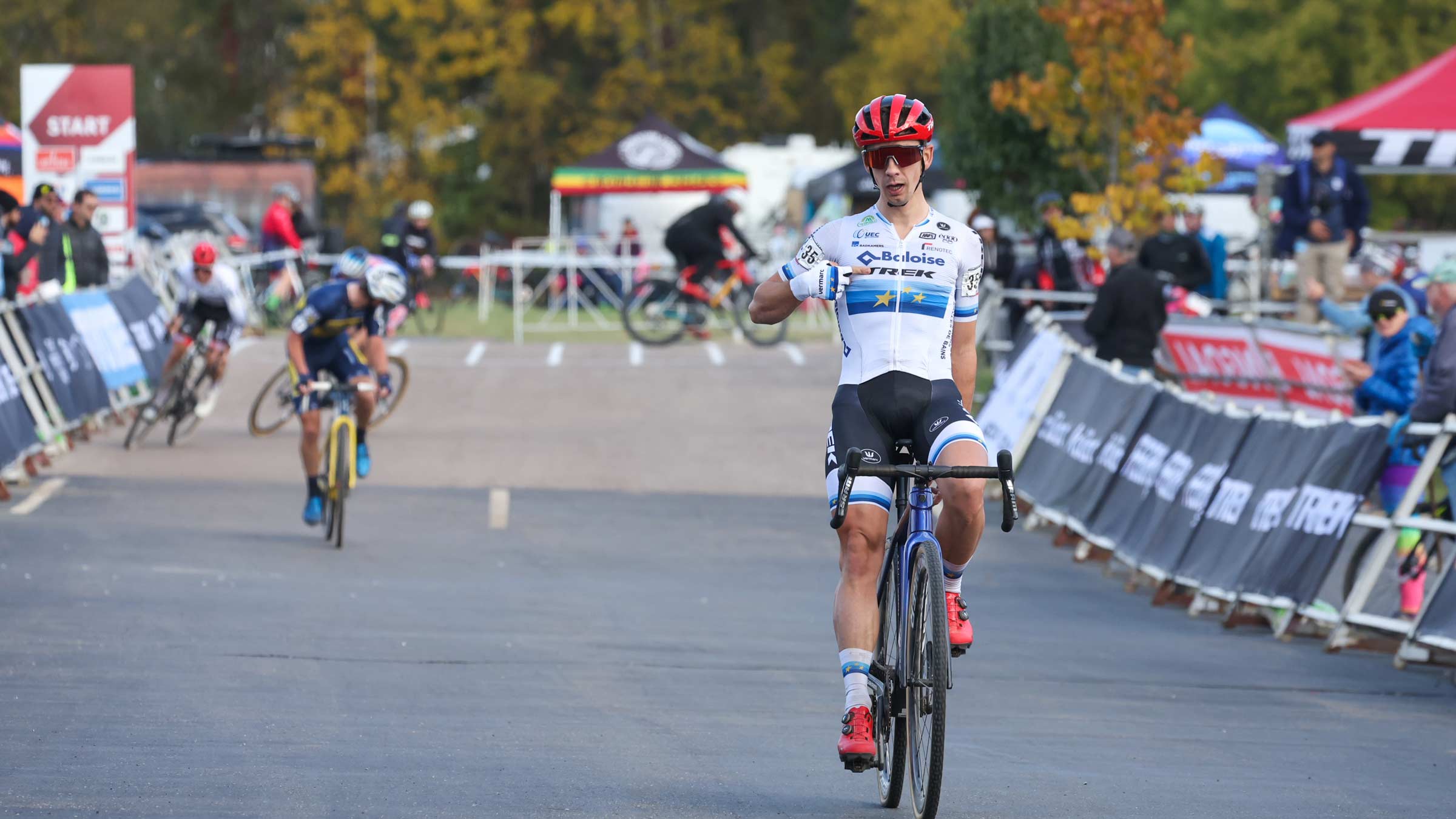 Lars van der Haar wins the men’s elite race at the Trek XC Cup C1 men’s elite race (Photo: Snowy Mountain Photography)Racing continues all weekend in Waterloo, highlighted by the UCI Cyclocross World Cup on Sunday. The elite women race at 12:30 p.m. central time followed by the elite men at 2:00 p.m.