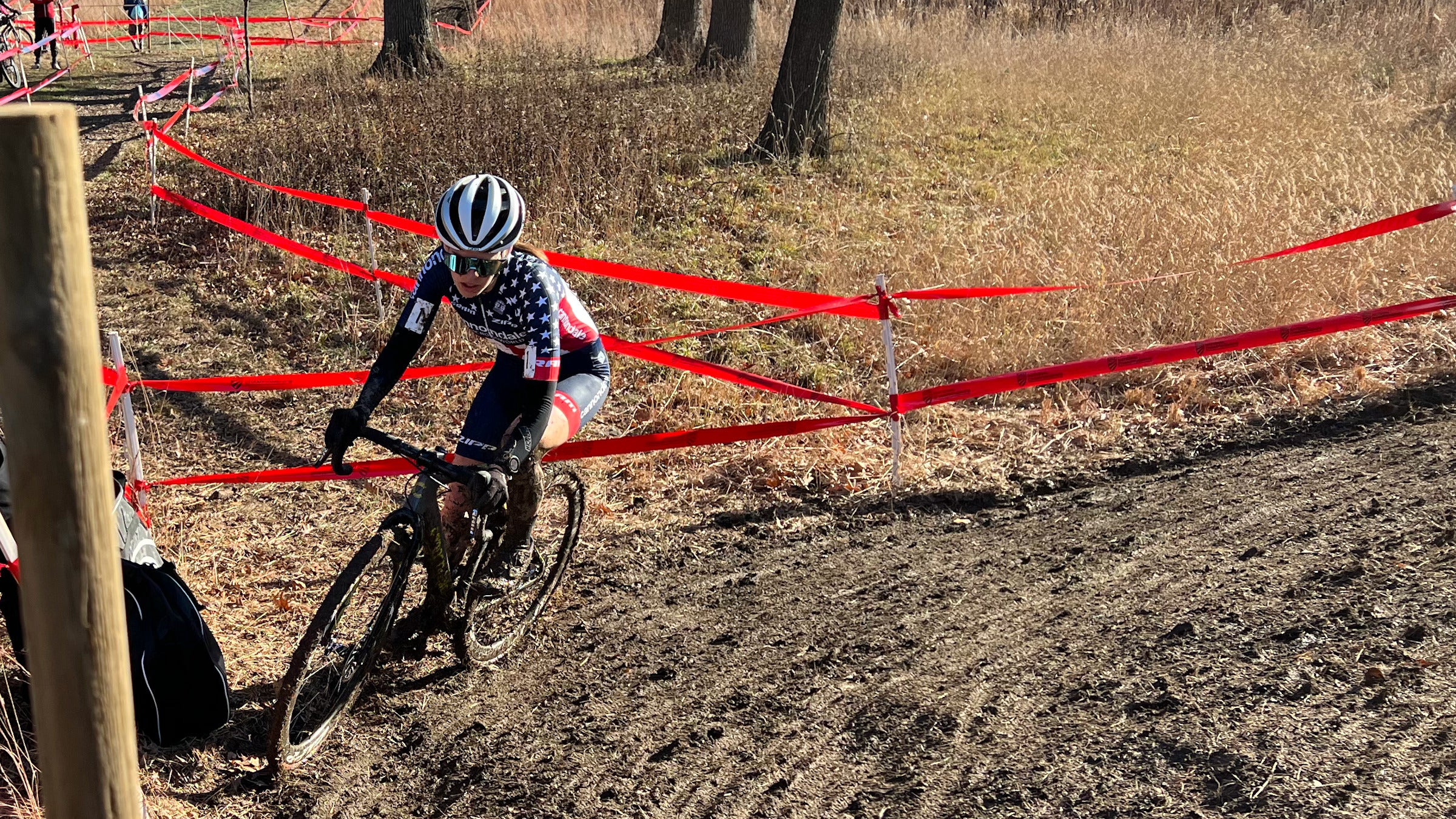 Munro made her second podium appearance, after finishing in third in the collegiate event. She had suffered mechanical and tire troubles on Thursday but rode a relatively straightforward race in the U23 event. Like many riders, she took a spill in the mud and swapped bikes.