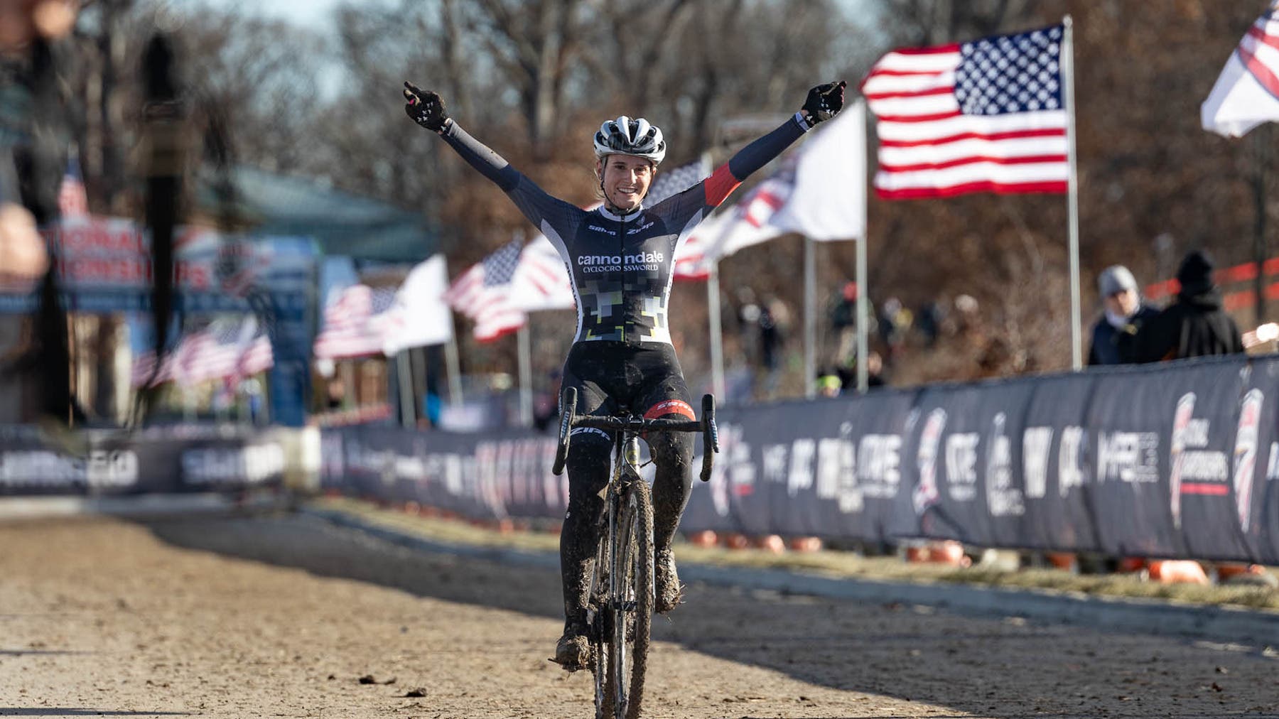 WHEATON, ILLINOIS (VN) — Clara Honsinger (Cannondale-Cyclocrossworld) dominated the 2021 USAC national cyclocross championships from the first lap, to defend the title she earned two years ago.