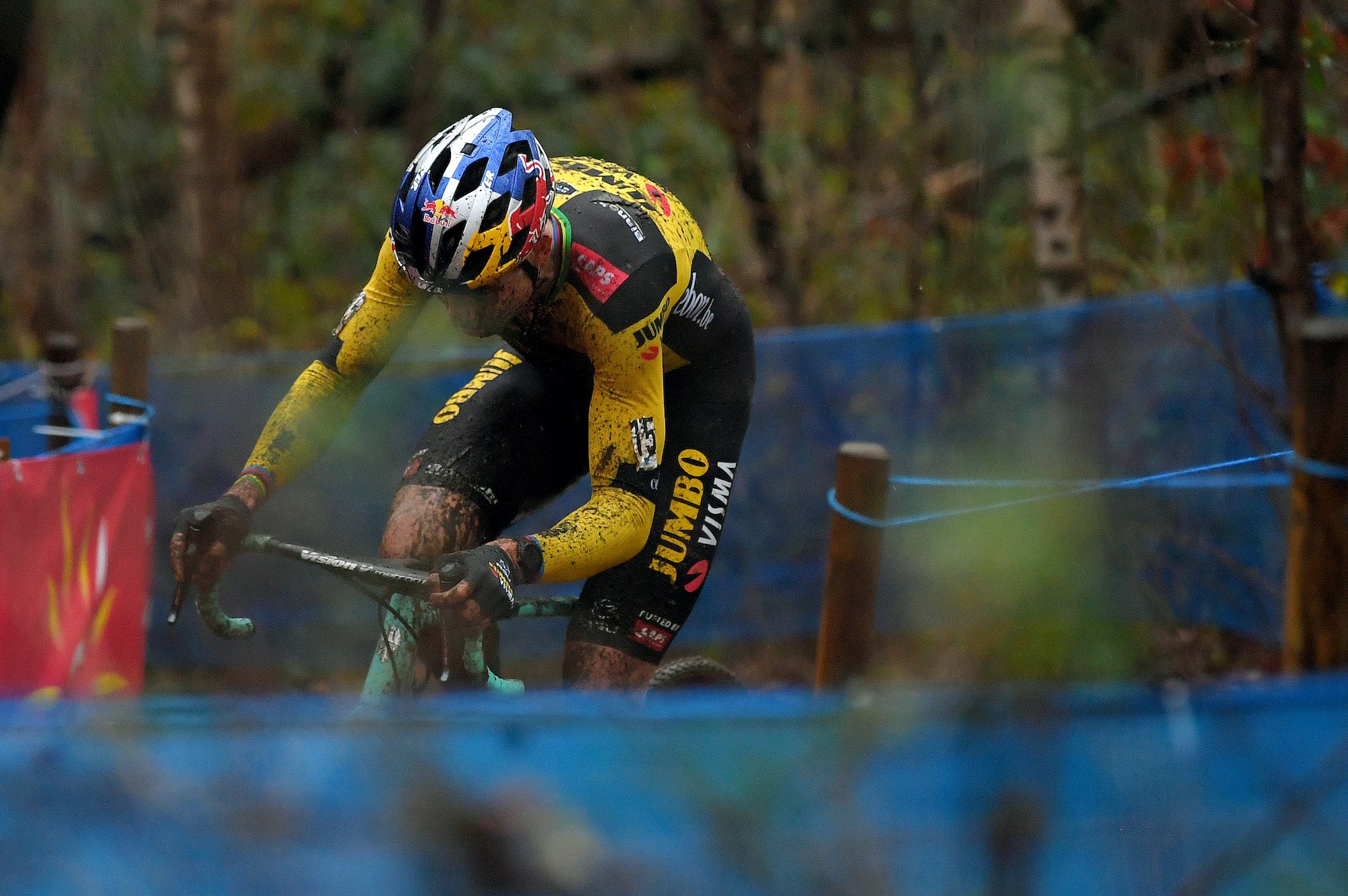 Van Aert explained that he felt nervous riding on a circuit that was just kilometers from his home. Those pre-race anxieties likely were not eased by a muddy wipeout in the recon ahead of the race.