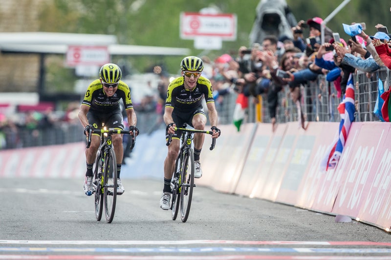 “Nothing changes. We’re still trying to win the Giro,” White said. “Esteban’s chances for GC are gone, which means I’ve got one very handy helper for Simon when it matters.”
