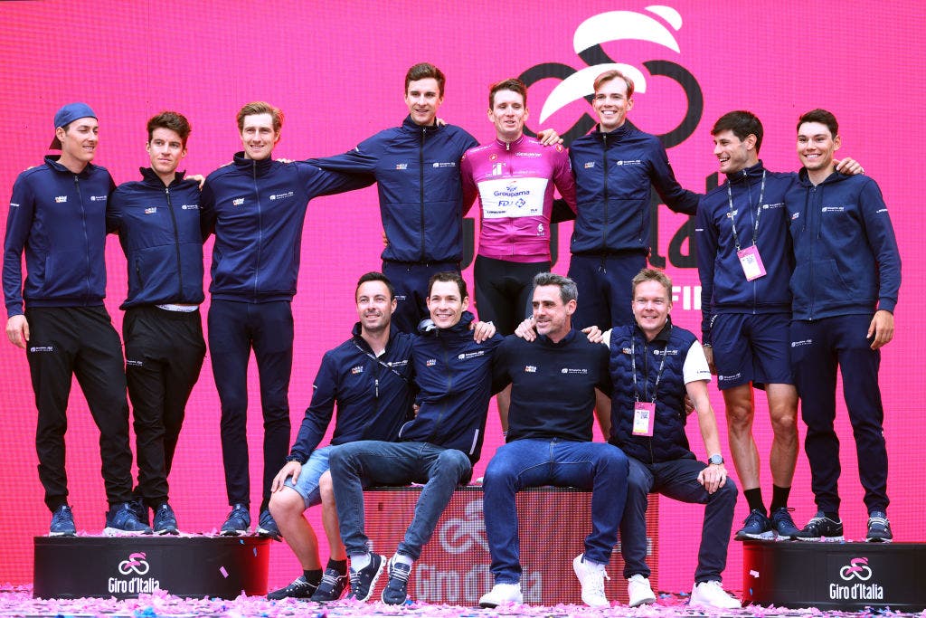One memorable scene during the race, which was not shown on camera, was the Groupama-FDJ team gathered together just beyond the finish line at the top of the Passo Fedaia after stage 20.