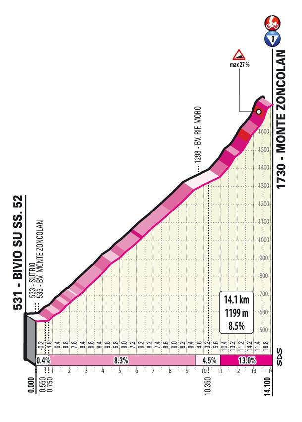Tratnik had been first to punch out of the breakaway on the lower slopes of the Zoncolan, with Fortunato bridging across soon after.