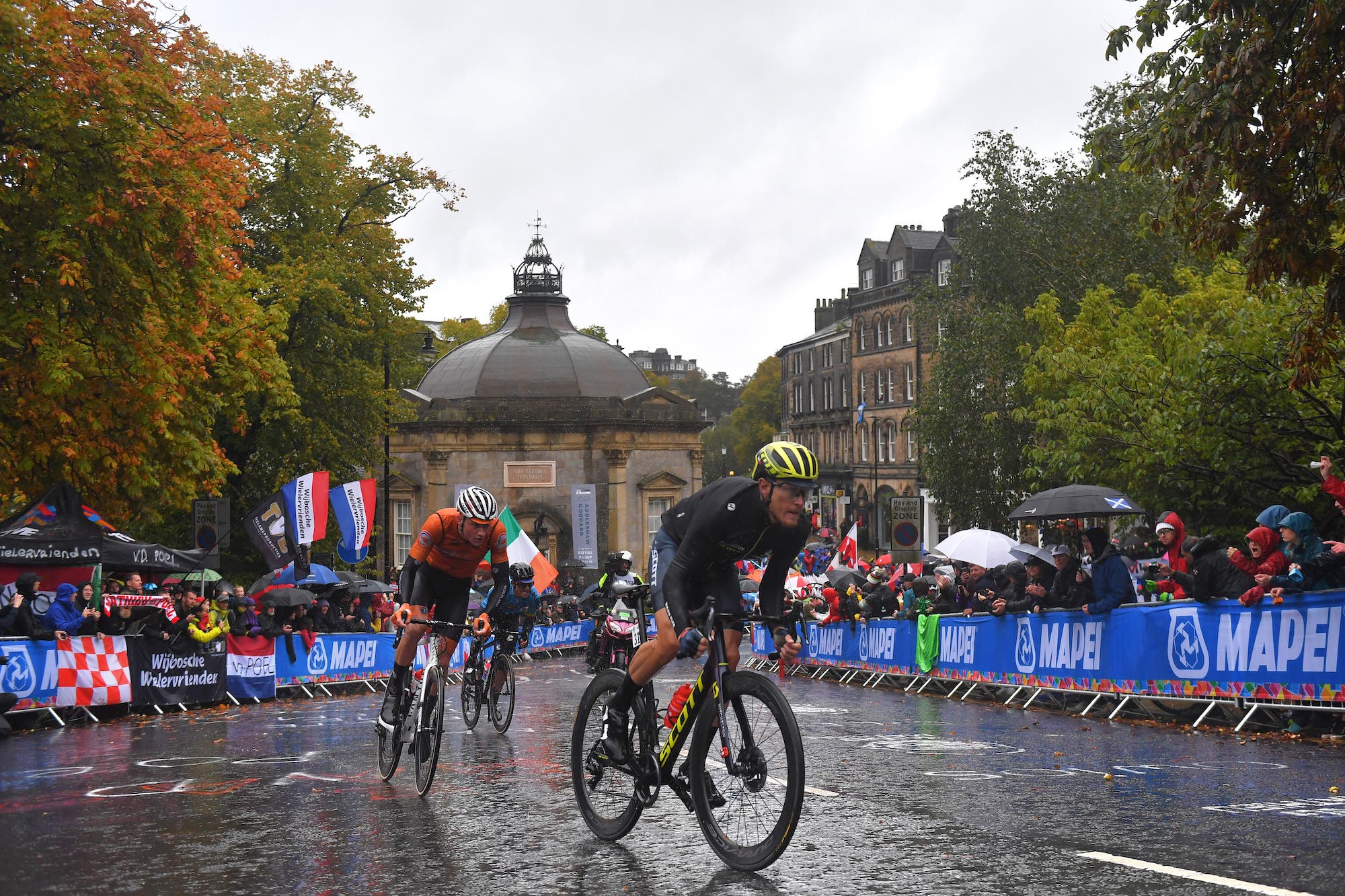 Pre-race favorite Matthieu van der Poel (Netherlands) was in the group of five that led the race into the closing circuit of Harrogate before spectacularly blowing on 12 kilometers to go. Gianni Moscon (Italy) was also in the front group in the final lap but was dropped with five kilometers remaining, having ridden hard for his countryman Trentin in the close of the race.