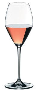 Rosé Colored Glasses The first name in stemware, Riedel, offers glasses for individual wines. Created and tested with rosé winemakers, the Rosé Glass was designed to precisely complement the aromas and flavors of rosé. This shapely glass elevates the earthy minerality and juicy, rich fruit aromas and flavors of any traditional Provençal-style rosé wine, and its diamond-shape bowl is designed specifically for enhancing younger wines—as most rosés uniformly are. This design shape creates a wide surface area in the glass to enhance alcohol evaporation, removing the astringency and intensifying the wine’s aromas. $60 a pair