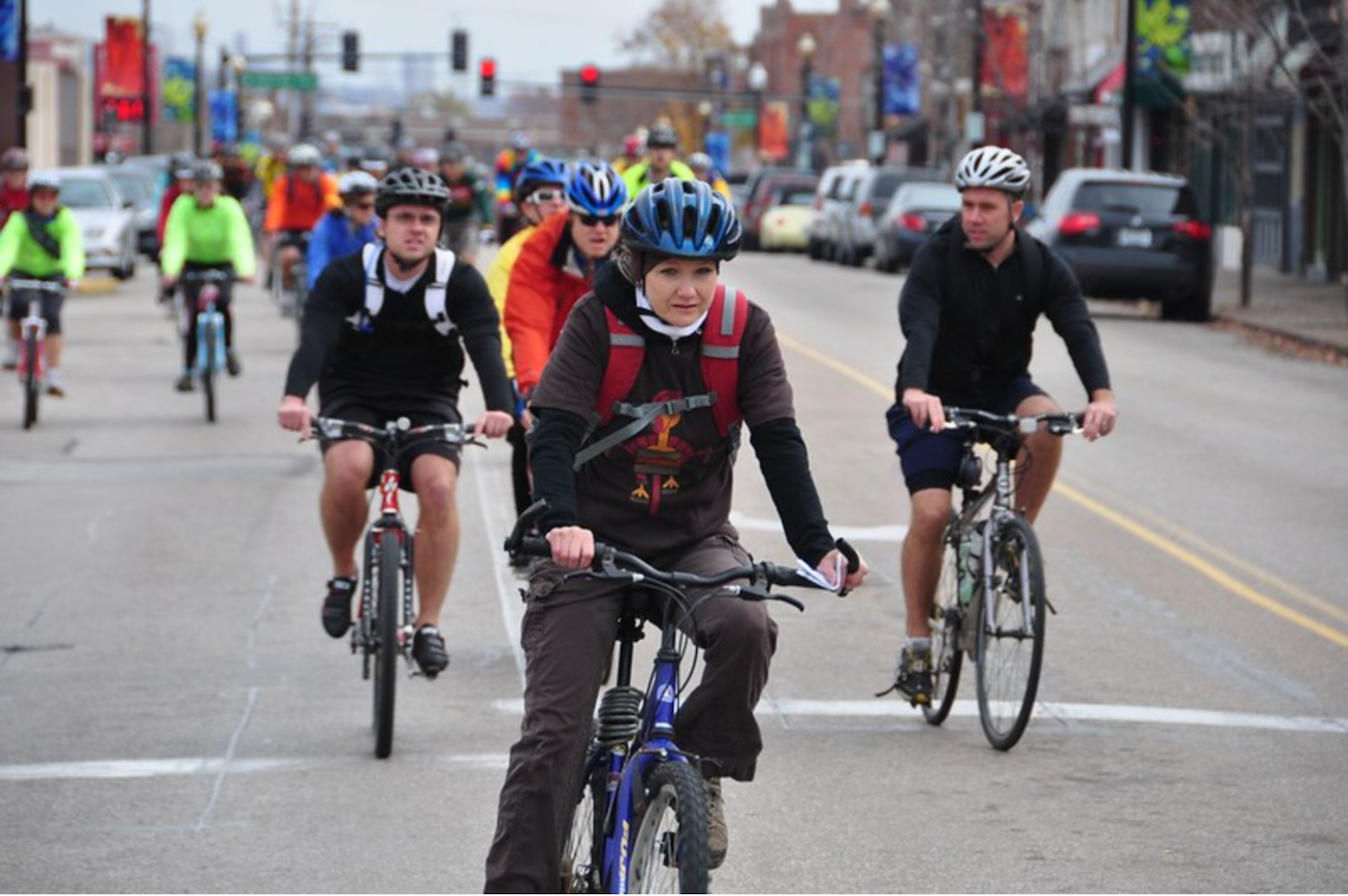The St. Louis, Missouri, version—the largest in the country drawing 500 to 700 people and one time breaking 1,000 on a day with particularly good weather—has foregone the traditional alleycat format and has opted to turn Cranksgiving into a charity ride. In lieu of participants spending money at individual stores, organizers now collect a $15 donation from each participant, $10 for kids, and offer multiple rides from 5 to 50 miles. “Collecting what the riders would have spent in the stores and then buying the specific food items at wholesale, that the food pantry needs, made a huge increase of the donation we made,” said Patrick Van Der Tuin, who has helped run the event since its inception 14 years ago. “We jumped from 13,586 items one year to 20,592 items the year we purchased items at wholesale. To maintain the original feeling of the event, riders still stop by a couple stores to pick up some food items.