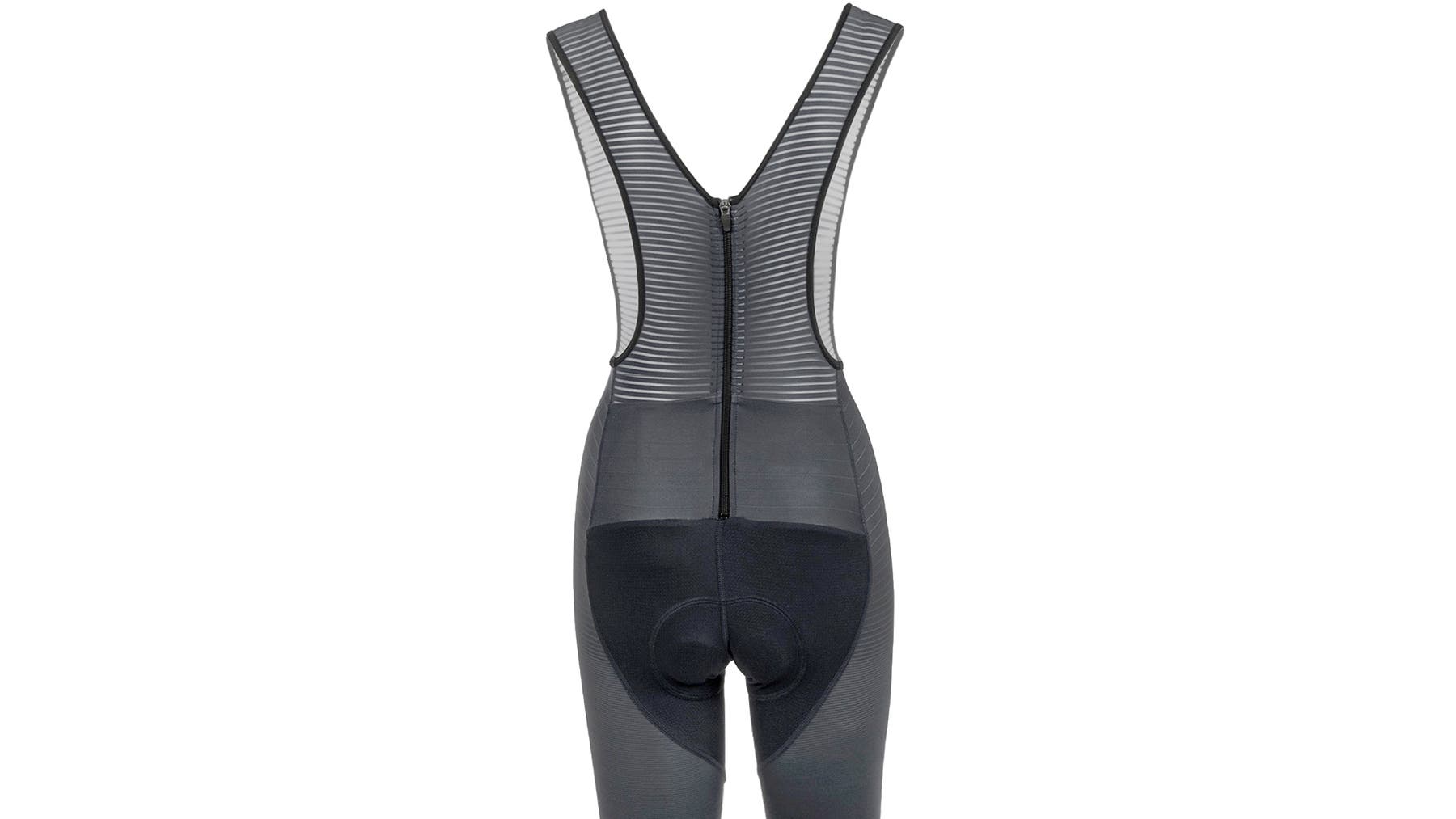 Pearl Izumi P.R.O. – This Archback is shorter in the leg than I personally like, with an 8.5-inch inseam, but hits all the notes of a fantastic set of modern bibs: gripperless leg panels, minimum seaming, and uppers the same color as the bib. The straps widen and cross at the waist, meaning short-torsoed jerseys won’t reveal skin in the back when in the riding position, which is the single biggest visual problem non-racerback drop-tail bibs face. Ultimately it’s the ease of use (no magnets or hooks), the high waist in the back, and the silkiness of the fabric that secured the best-overall spot.