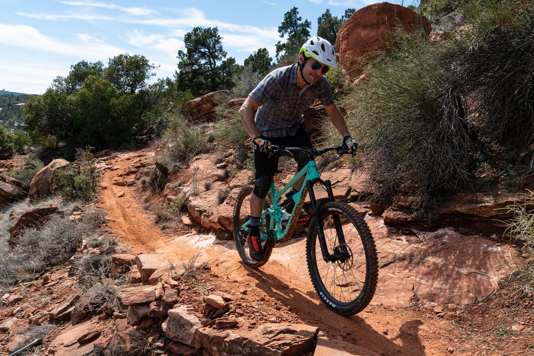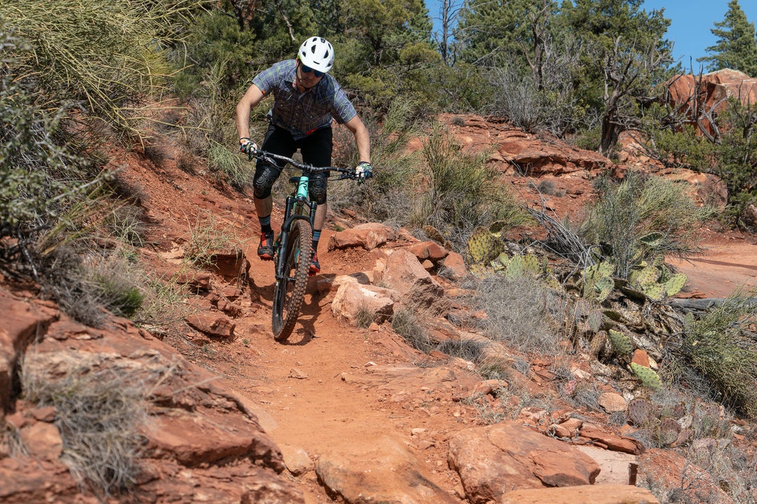 Sedona’s legendary red rocks play host to a mix of tacky red dirt, slick rocks, and cacti on all sides. The trails are often technical, but descents can be fast, twisty, and in many cases, very exposed. In other words, it was a perfect playground for the 165mm-travel Rail.