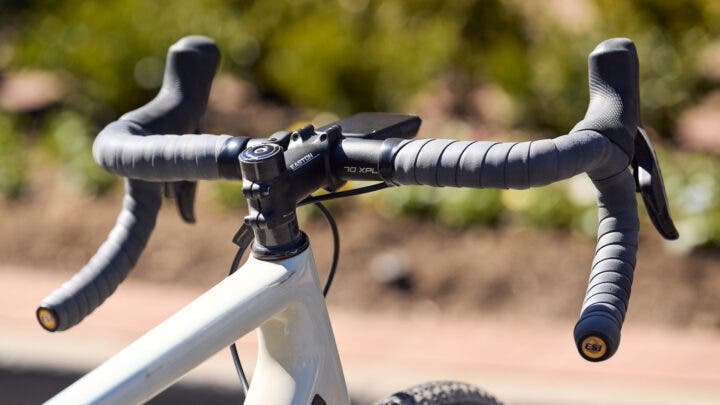Her Easton stem is paired with Zipp 70 XPLR handlebars that feature flare and outsweep for greater stability on gravel roads.