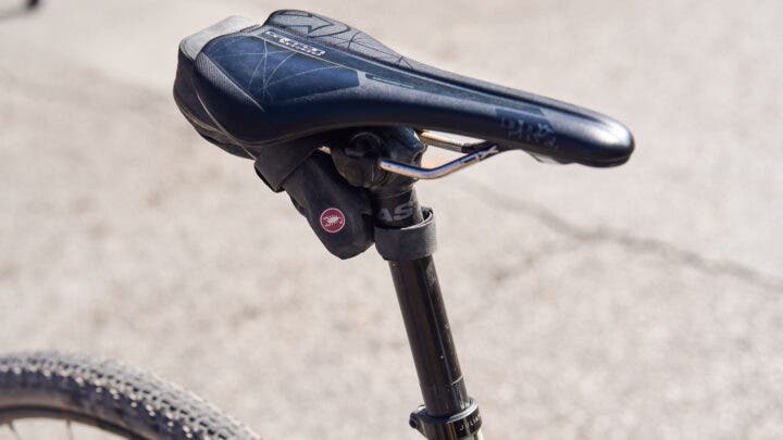 Grant rides a Pro saddle and uses a Castelli saddle bag.
