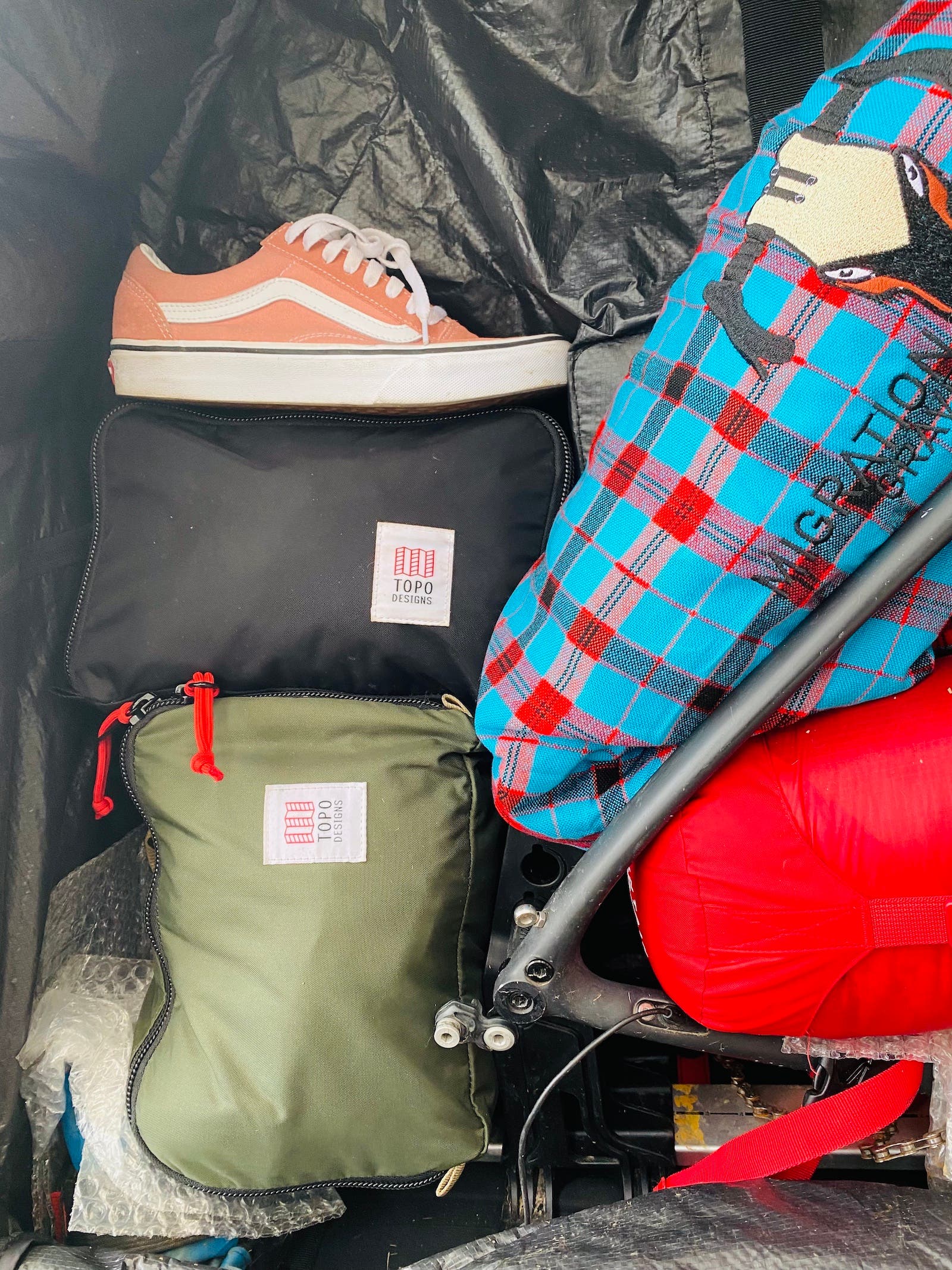 Topo Designs pack bags: Would you like to know how much dirty laundry you can fit in the 10L cube bag? Approximately five jerseys, four bib shorts, two neck gaiters, one pair of sun sleeves, five pairs of socks, and two pairs of gloves. Even overstuffed, the big burly zippers make these things easy to get into and out of. I also used the 5L pack bag for all the random things like tubes, tools, snacks, a headlamp, and batteries that I didn’t want floating around in my duffel. This was a race of packing and unpacking every single day, so I really appreciated these packs’ ability to maintain some semblance of organization amidst the chaos.