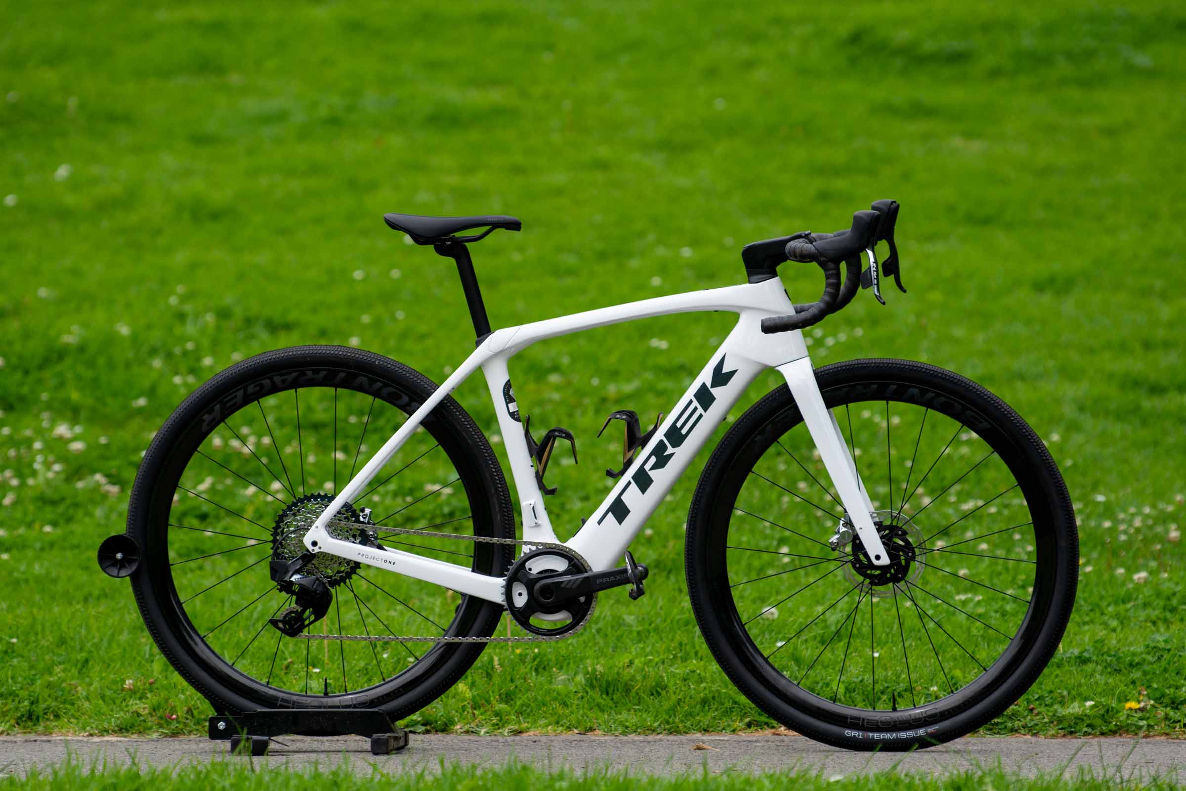 SRAM Red eTap 1x groupset (42T chainring, 10-44T cassette); Bontrager Aeolus RSL 37V wheelset; Bontrager GR1 tires in 700x40c; Bontrager Pro IsoCore VR-SF handlebar; Bontrager RCS Pro stem; Bontrager P3 Pro saddle; Domane carbon seatpost