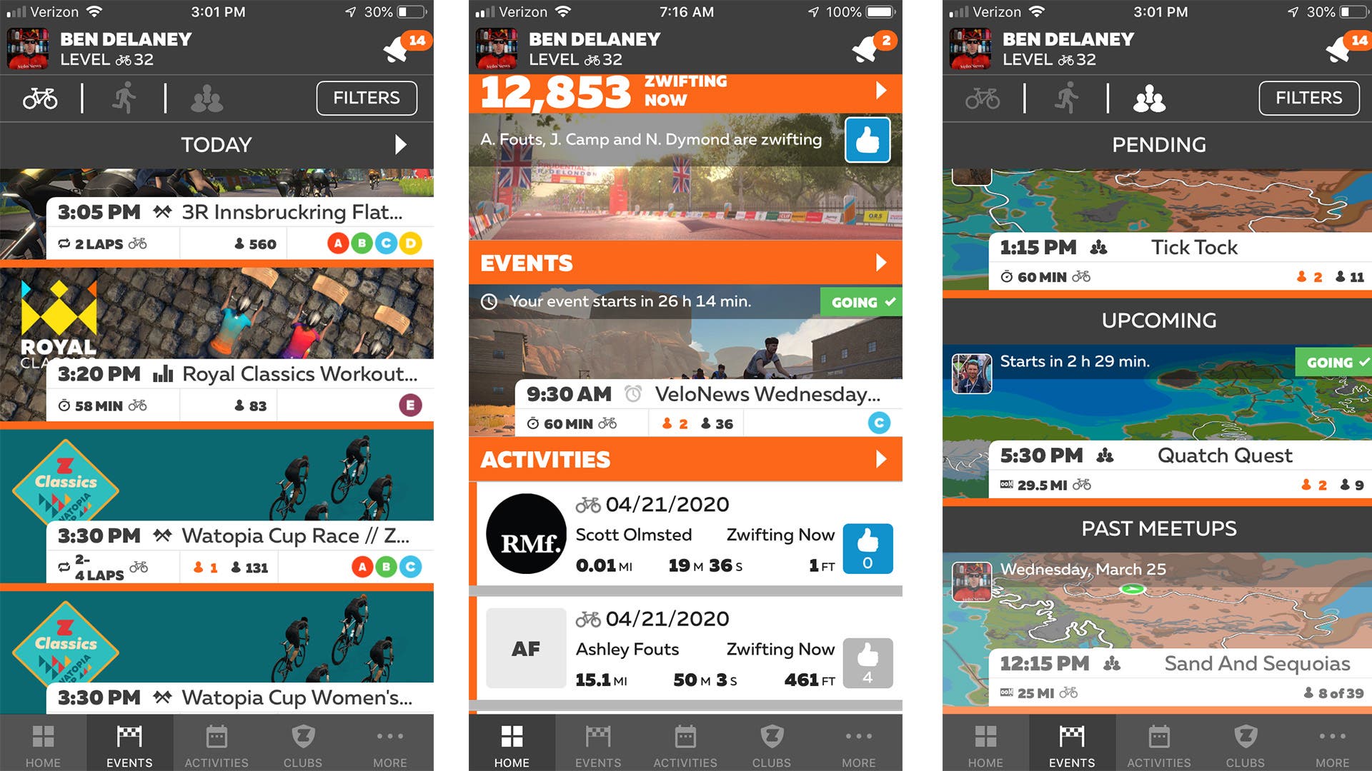 Zwift has two apps: Zwift the game, and then the Zwift Companion App, which does double duty as an event planner and a communication tool.