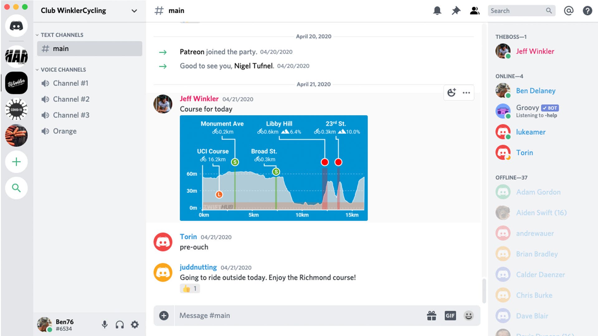 I’ve found it’s best for groups of 25 or less, but it certainly can be used as a one-way communication system for huge groups. A few Boulder group rides that I enjoyed outside now take place on Zwift with Discord. Whether heckling each other, encouraging each other through intervals, or just shooting the breeze to pass the time, being able to talk to each other while pedaling inside is a game-changer.