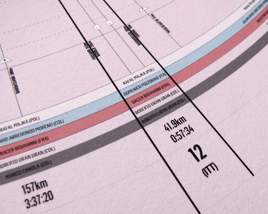 You can’t exactly hang a Strava file on your wall, can you? Seems a bit tacky. So, MassifCentral has launched a Kickstarter campaign to raise funds for an online artwork creator that would — if all goes according to plan — allow you to upload a GPX file, that is translated into an attractive data visualization. MassifCentral has been doing this for a couple years with major events like the Giro d’Italia (see above), but now they aim to make the labor-intensive process accessible to the masses. Chris Froome seems to like it: “The (MassifCentral) Limited Edition 100th Tour de France print is awesome.” Maybe he’ll help them raise the £55,000 ($67,835) crowdfunding goal …