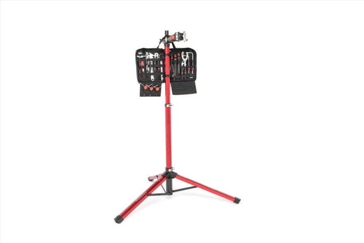Despite that huge capacity, the stand itself weighs only 18 pounds and collapses down to 8 inches by 43 inches, making it portable enough for events and races, or keeping on hand in your car for the trailhead. With support for tube diameters up to 2.6 inches, larger bikes can also fit in easily. The jaw closure also now features a ratcheting, rotating crank that allows for quick one-handed operation. That means less fumbling when working on heavy or non-standard bikes.