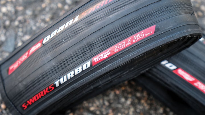 Specialized’s Turbo RapidAir tires buck a few tubeless trends. While most tubeless tires are made from several layers of butyl-impregnated fabrics, the RapidAir tires feature just two layers where the tire contacts the ground. It’s a patent-pending system that cuts weight drastically and improves suppleness. The sidewalls are reinforced to increase cornering control and durability.