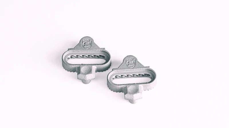 These $85 3D-printed titanium cleats are compatible with Time ATAC, Crank Brothers, and Shimano SPD pedals.