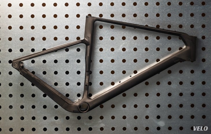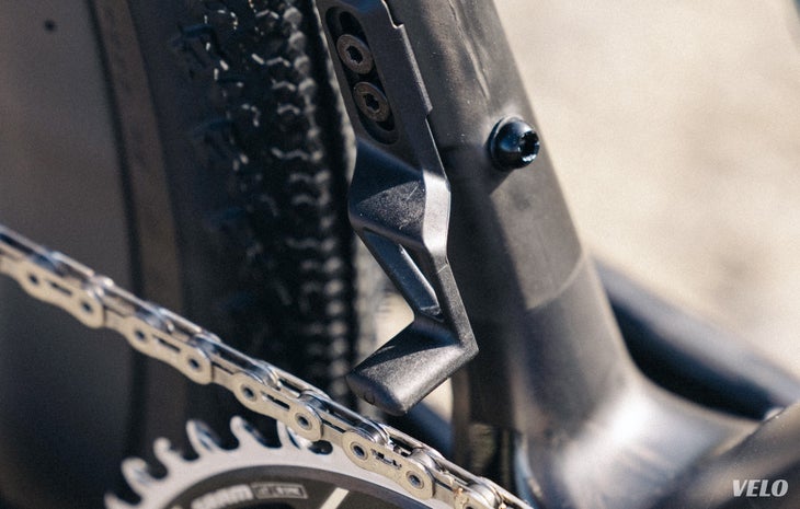 Another reason we were informed of the lack of down tube storage is that, unsurprisingly, having a large hole in the frame and replacing it with a removable lid affects stiffness and adds weight. There is, though, a top tube bag mount. Just don’t expect to be hauling a week’s worth of supplies on this thing.