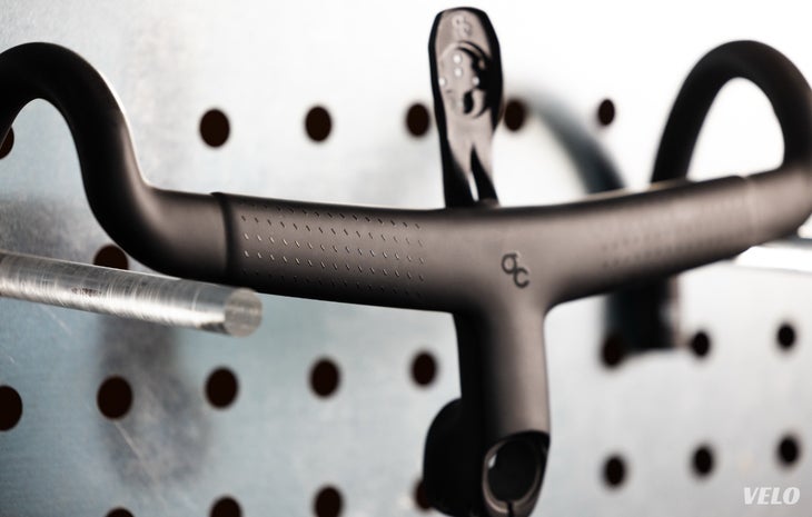 There is also the new OC SH RA10 integrated cockpit, a one-piece carbon bar and stem. The weight is claimed to be 314 grams (400 mm bar / 100 mm stem), with some of the low weight coming thanks to the use of titanium hardware across the bars. And believe it or not, but the computer mount is compatible with the monstrous Wahoo Ace computer