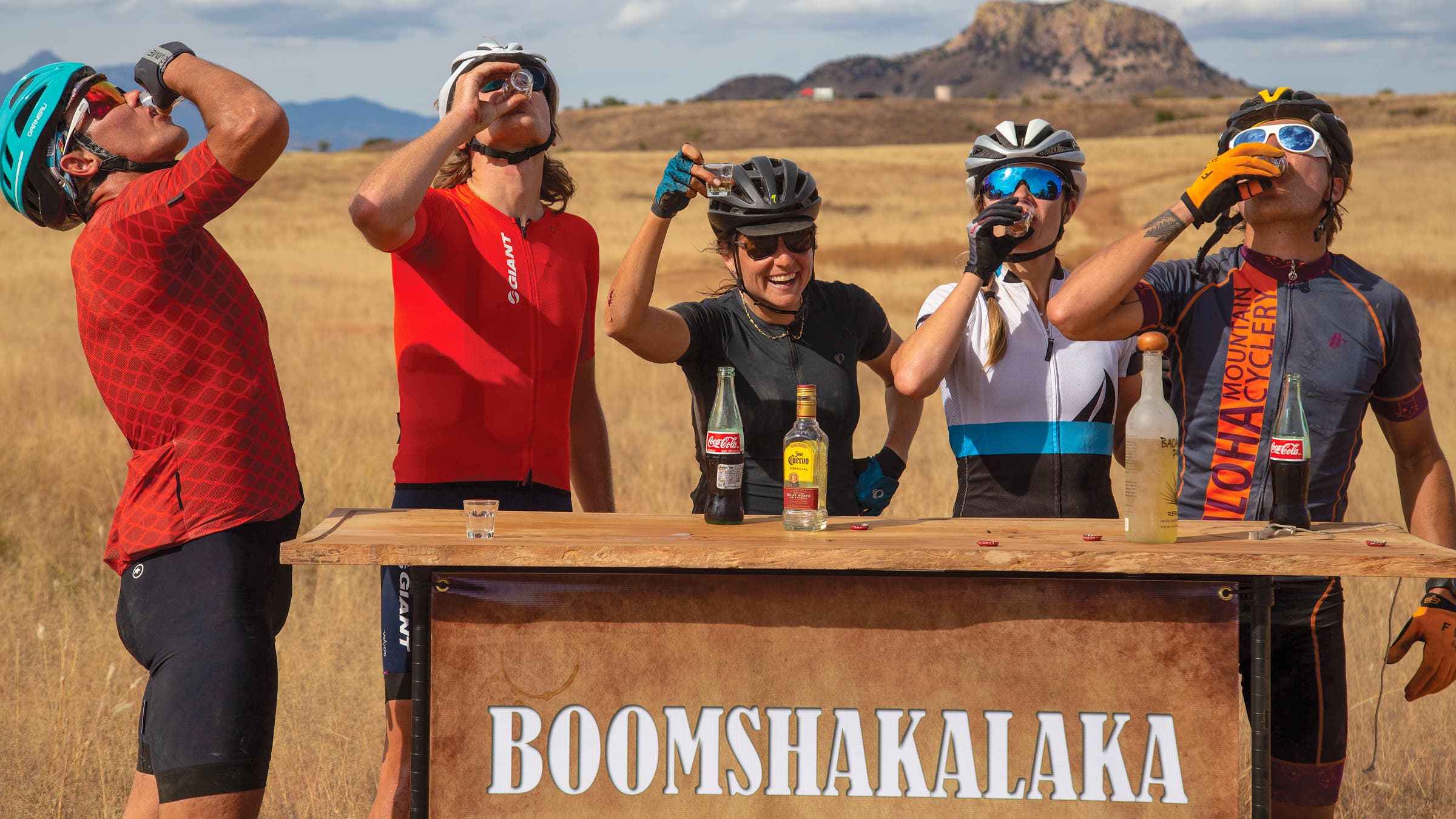 In the Spirit World, the story goes that when Rentz rode by the spot that would later become the pop-up tequila bar, she took a look around at the staggering desert skyline and exclaimed ‘Boomshakalaka!’ The aid station at mile 90 then became the Boomshakalaka Bar.