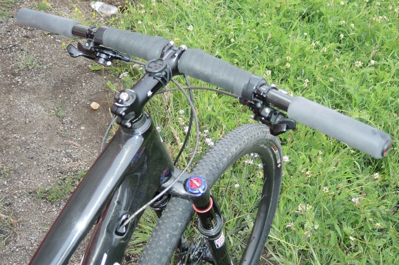 Schuda cut an ESI Chunky grip in half and used that as the base of his armrests, and then wrapped it in some electrical tape to keep it in place, and some bar tape for comfort. Schuda said he used the armrests most between the Twin Lakes Air Station and the Powerline climb.