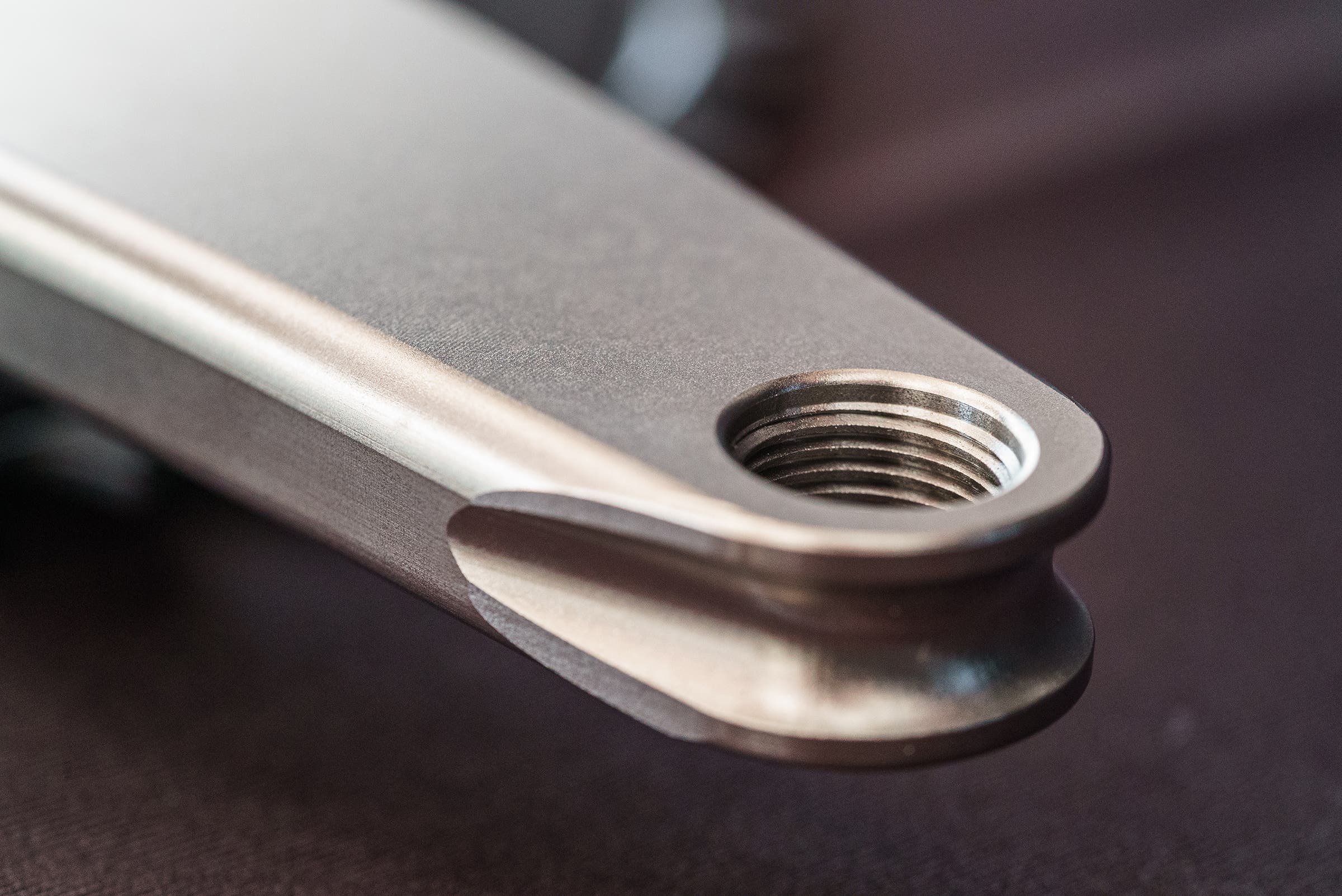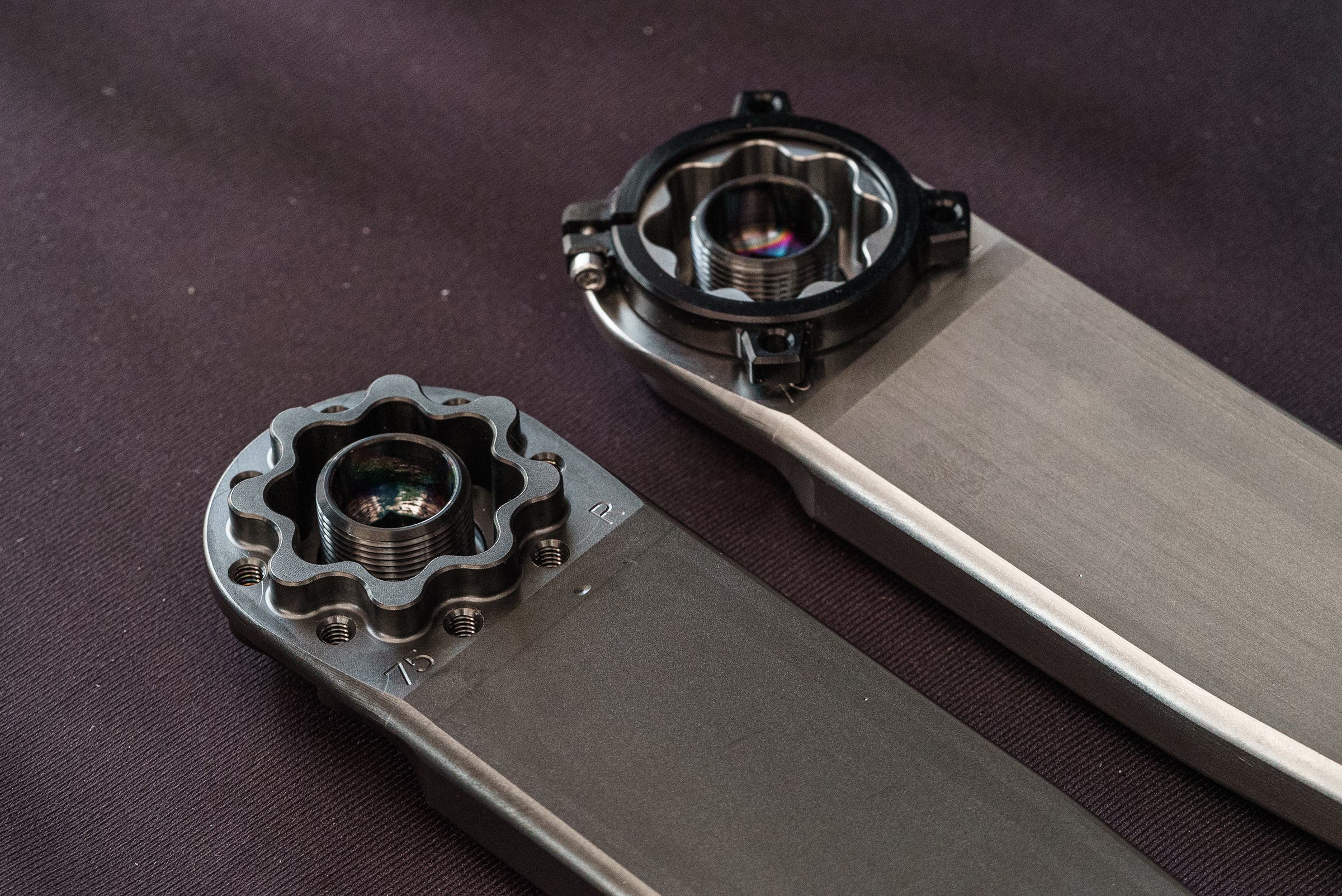 Those specs are rather dry though. The real magic is in the construction. While it’s true that this latest option is precision CNC machined out of a solid billet like all the other choices, this time it’s two pieces. The first side comes out of CNC with a hollow center and a second piece gets added on top. Merging the two together is the job of a robot with a laser that welds perfectly every time. The end result is a pair of crank arms with a spindle that weigh out at 446g with a 170mm road spindle.