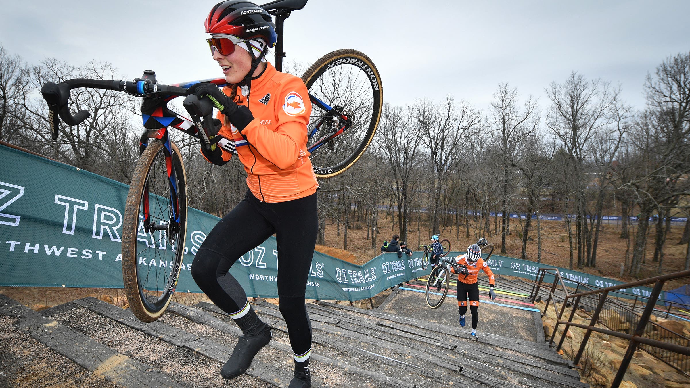 American Clara Honsinger was third here in Fayetteville at the World Cup earlier in the season behind winner Lucinda Brand and second-place Denise Betsema. Honsinger raced the relay Friday, which she said was a good way to preview the course at race pace.