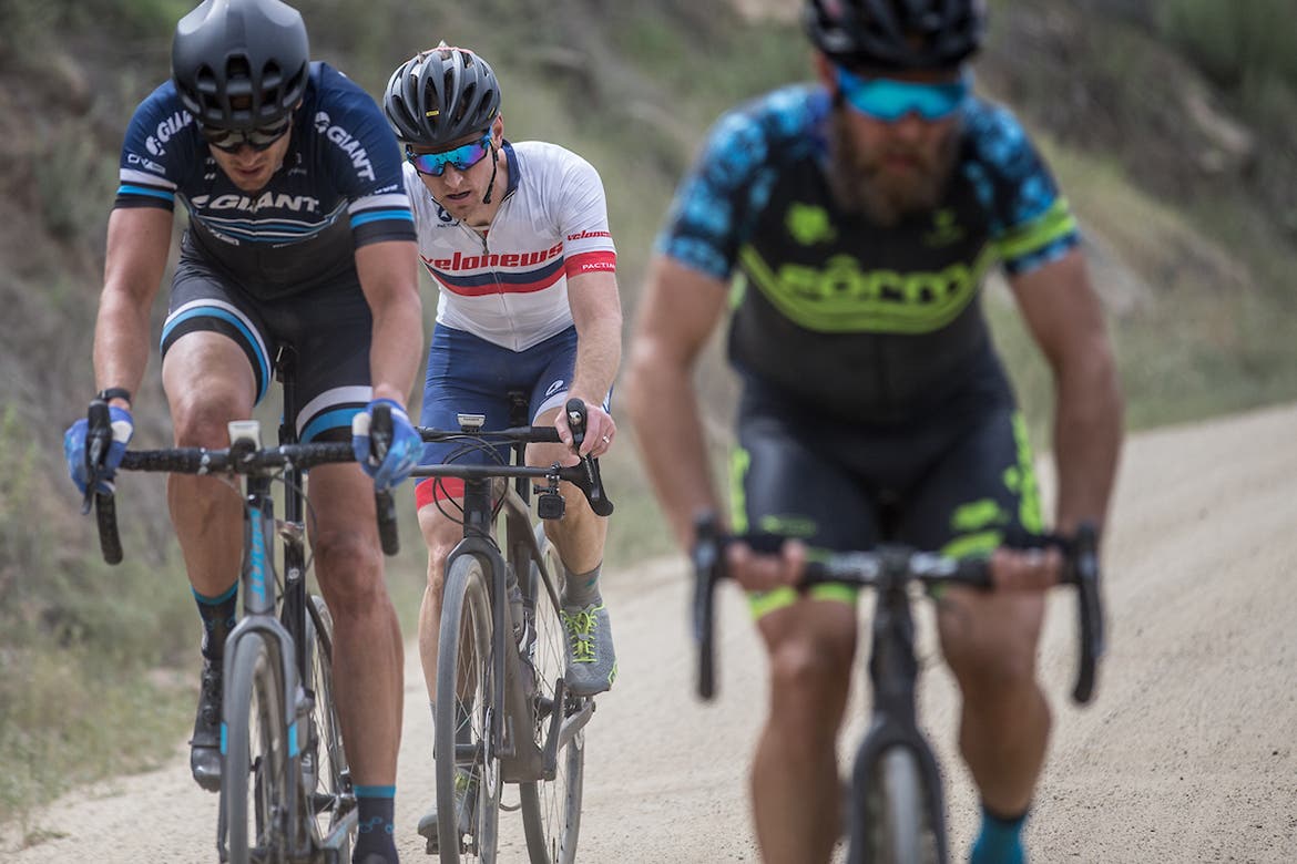 The race kicks off with a bit of Califonia flair as the National Anthem played with an electric guitar. The group is a bit tense but no worse than the average gran fondo start. BWR splits the full-distance Waffle ride into two waves. The first wave is fast, perhaps a bit hectic at times, but not to the point of being scary. The craziest part comes after 10 miles: You do a 180-degree turn, blast through a little water crossing, and then it is onto the singletrack trail with everyone fighting for position. Things split up and regrouped a few times in the first half of the ride with trails interspersed by long road sections. I finally gave up the ghost on the 1,400-foot dirt climb up Black Canyon, about 50 miles in.