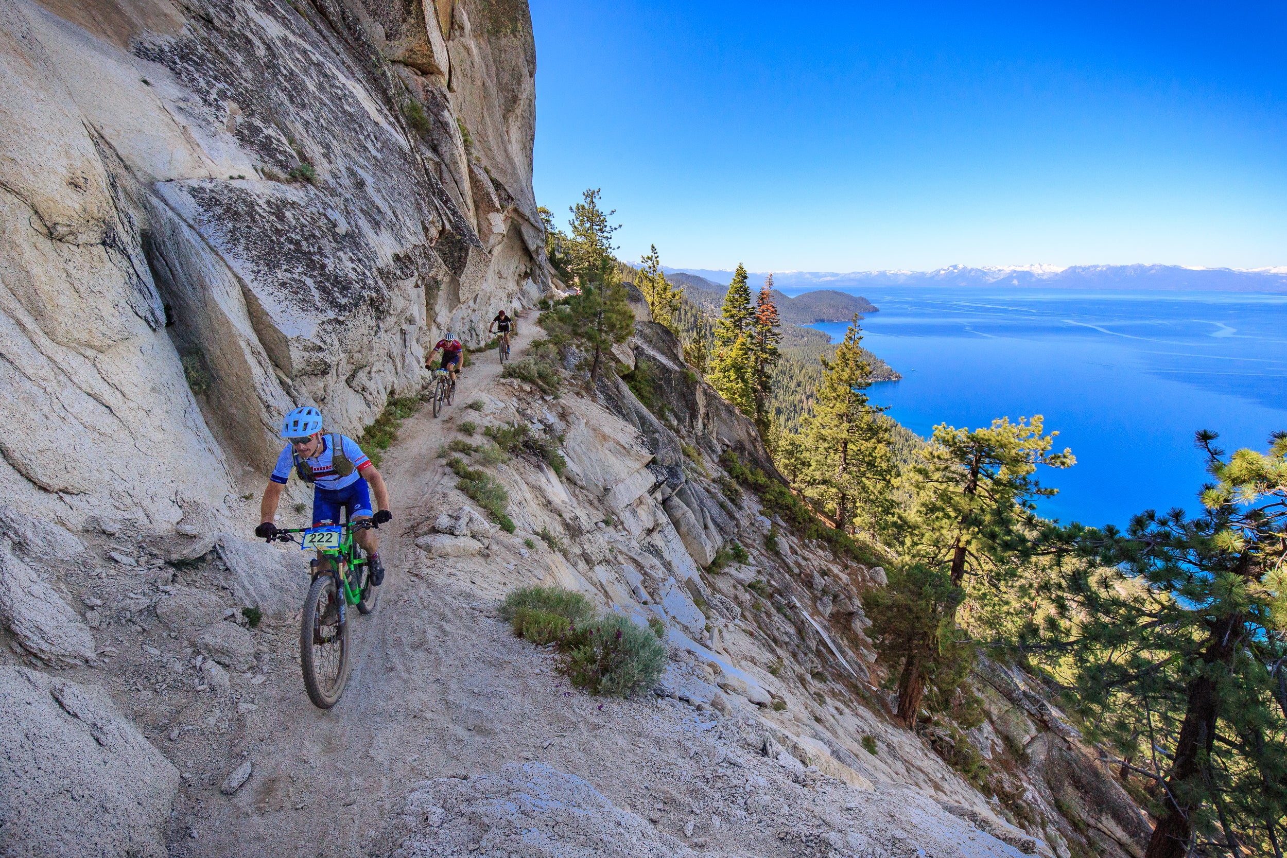 We turned onto that famous piece of singletrack and were immediately surrounded by the panorama of Lake Tahoe and the surrounding mountains. Maybe this is what it feels like to fly inside one of those plexiglass turrets on a World War II bomber. The views were as distracting as walking through a casino but far more enjoyable.
