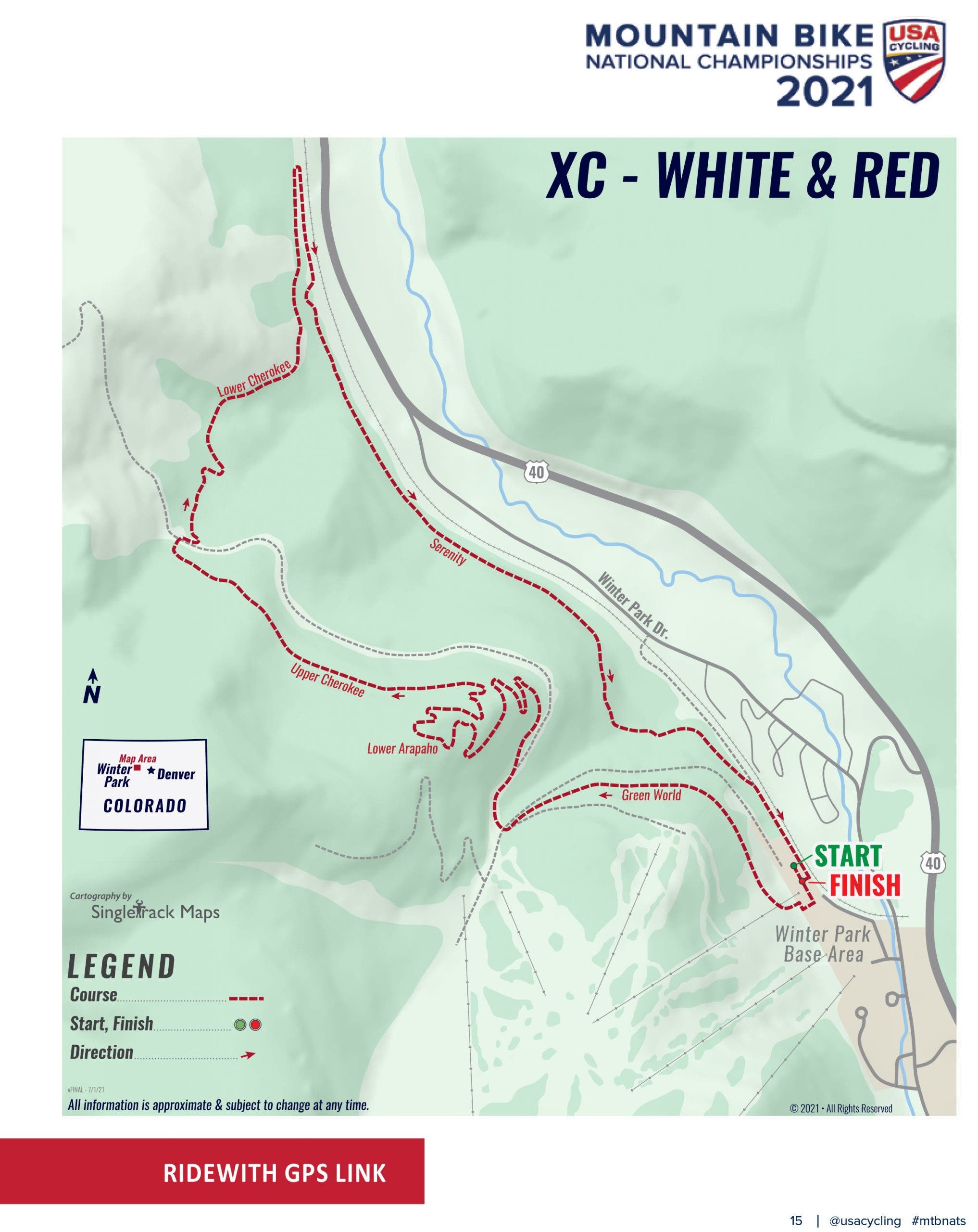 The elite men and women will compete on the “red” XC course, a five-mile loop with approximately 700 feet of climbing and descending.
