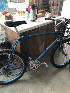 Right away, the connection to cycling is evident in the shop’s name. A captain drives a tandem bicycle, while the stoker sits behind. It’s no coincidence that the Conways got married on a vintage Schwinn tandem. There’s a 1973 Ritchey Skyliner tandem on the wall above the coffee bar to drive the point home, as well as several other vintage Ritchey bikes, including Frischknecht’s race bike from the 2000 Sydney Olympics.