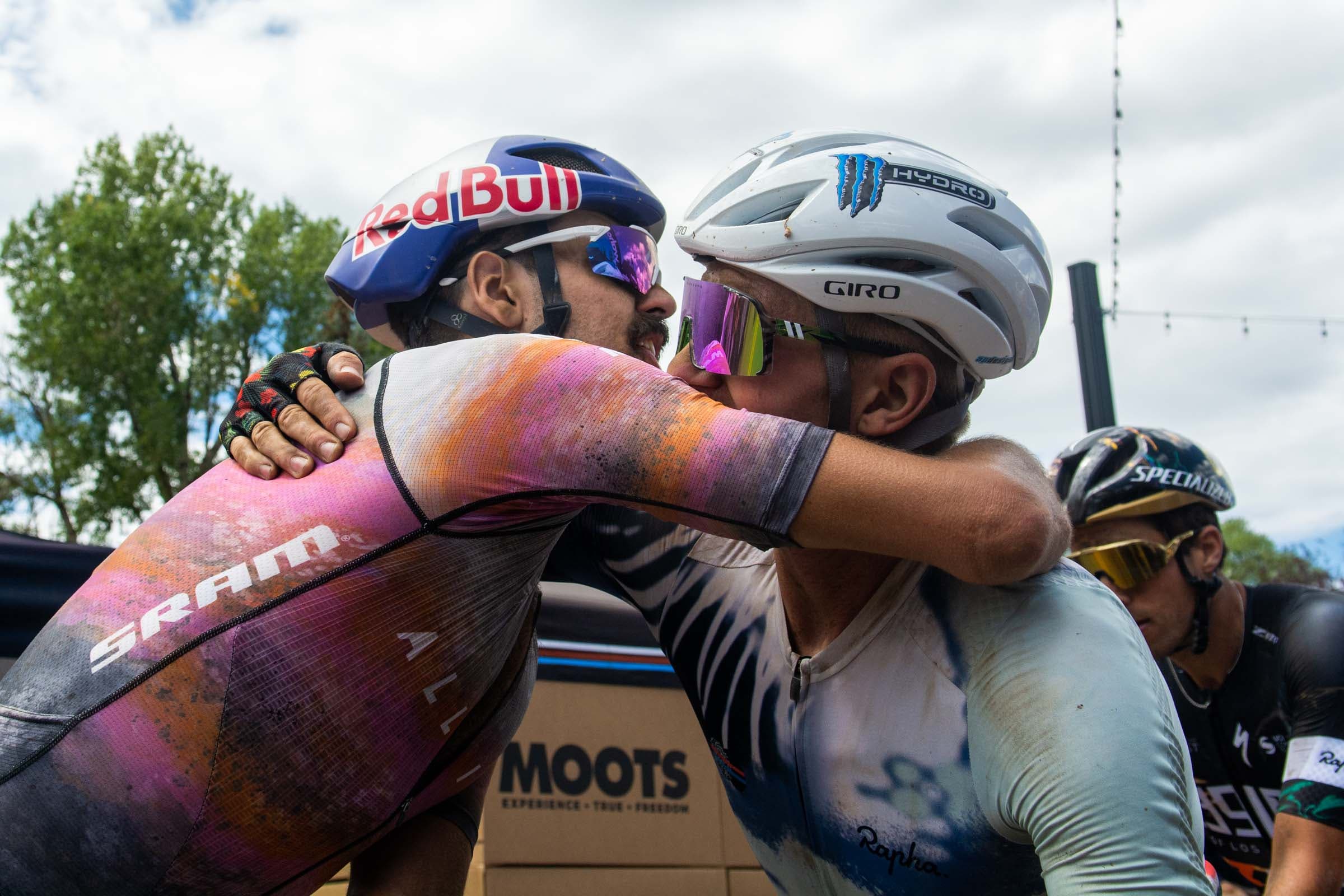 I’m hanging out with the two riders — and their partners Sofia and Nichole, respectively — in the finishing chute at SBT GRVL, where Swenson is slowly coming back to life. The 28-year-old just out-sprinted both McElveen and Freddy Ovett to win the 142-mile gravel race, the day after nearly breaking the course record at the Leadville Trail 100.