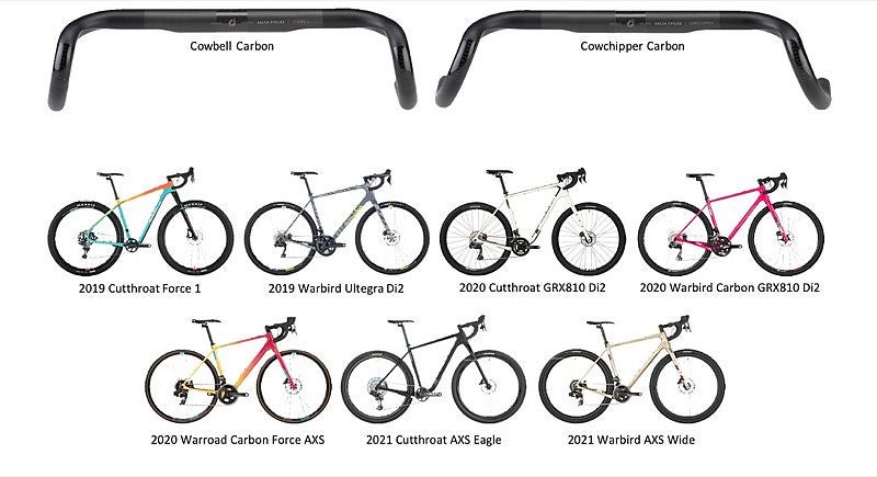The recall involves Salsa Cowchipper, Salsa Cowbell, Whisky No.9 12F, and Whisky No.9 24F carbon handlebars. The model name is printed on the handlebar. The bars were also spec’d on the Salsa Cutthroat, Warbird, and Warroad bikes. The handlebars were sold separately from January 2018 through August 2022; they were sold as original equipment on complete bikes from August 2018 through June 2022.